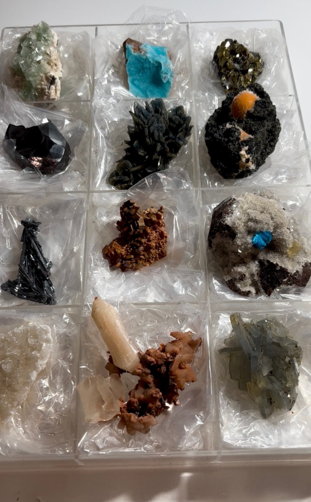 Excellent Variety of Mineral Specimens Blue Cavansite with Calcite (India), Red Vanadinite (Morocco), Green Apophyllite (India), Stibnite (China), Blue Hemimorphite... Read more