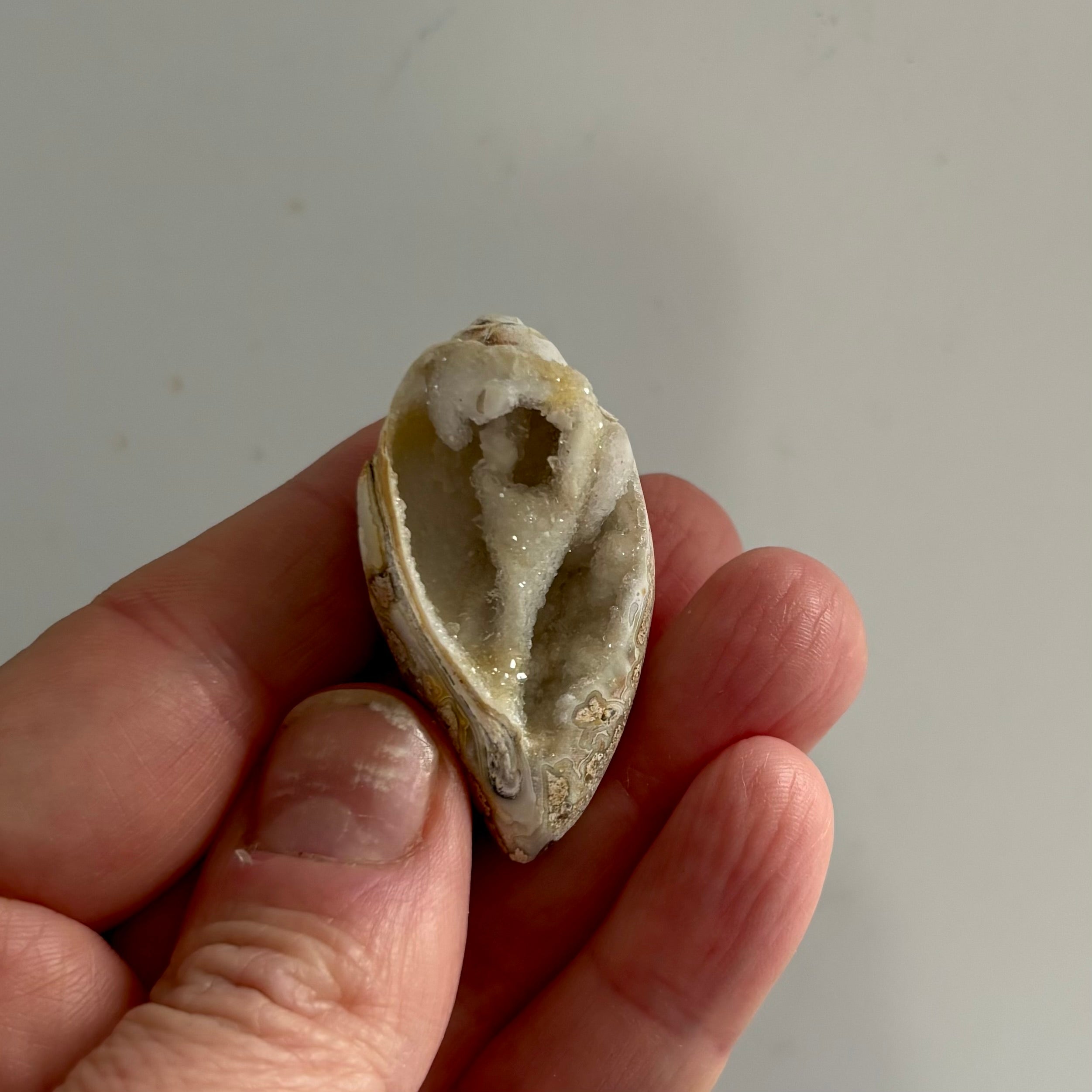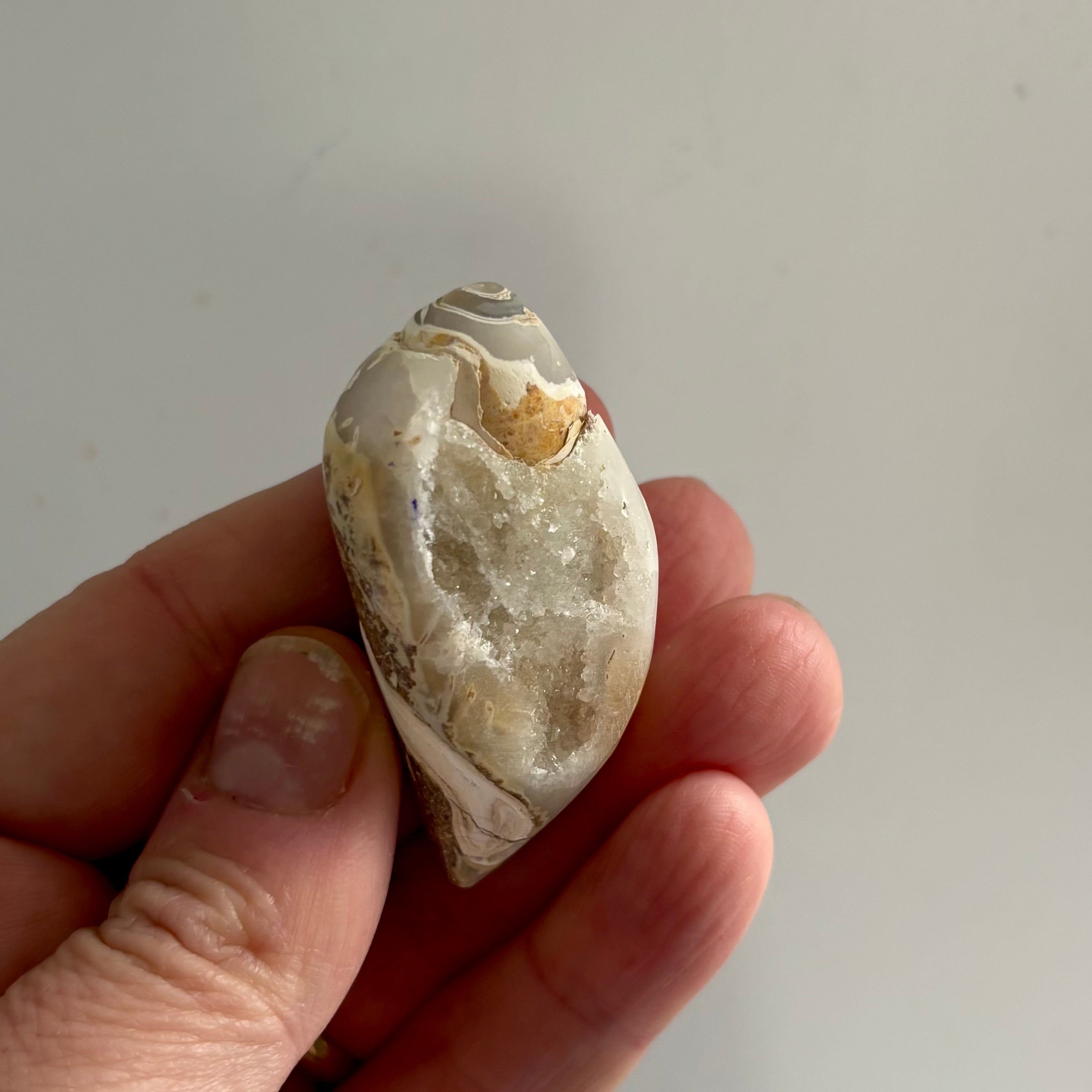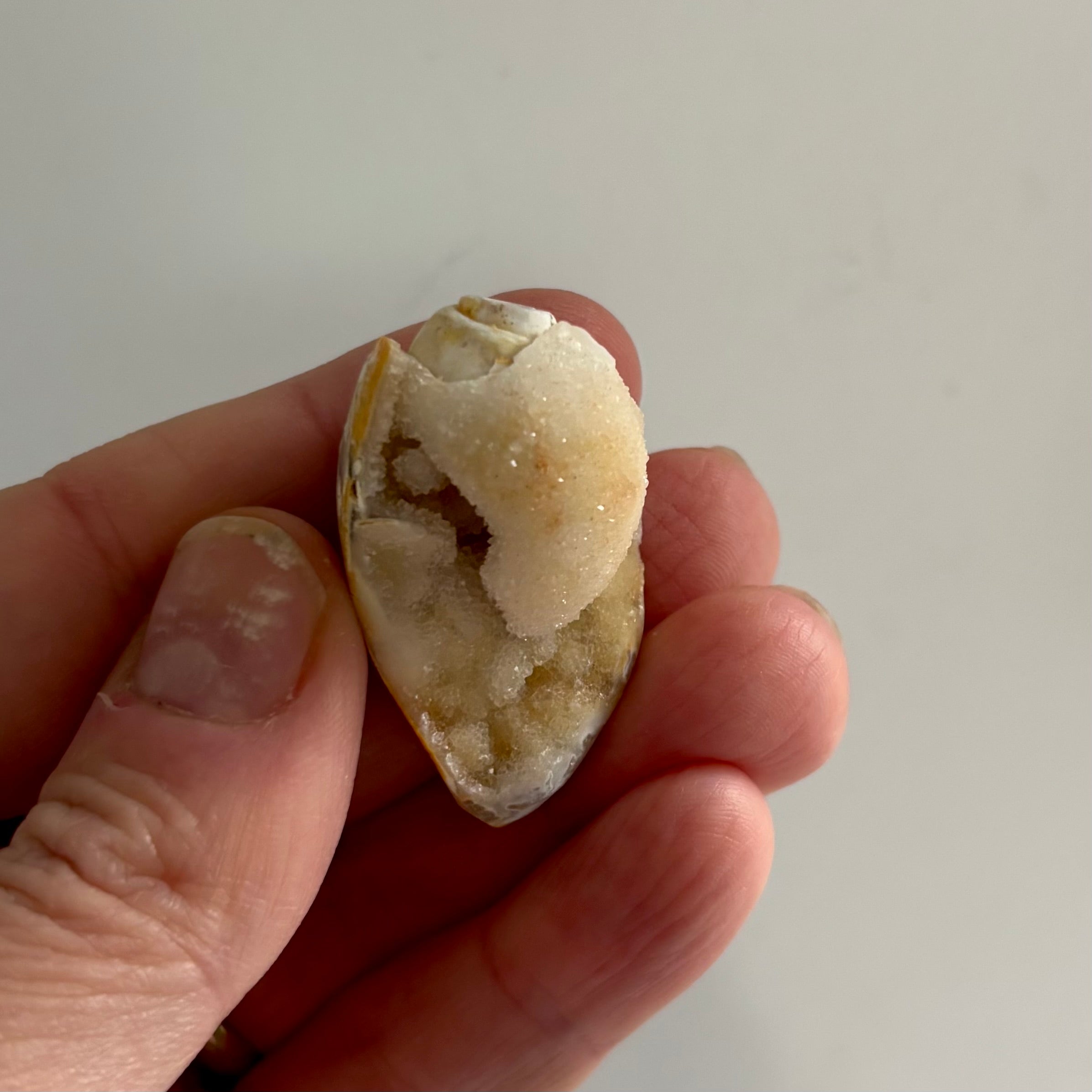 These fascinating fossils are composed of chalcedony Quartz and are often internally encrusted with druzy quartz.