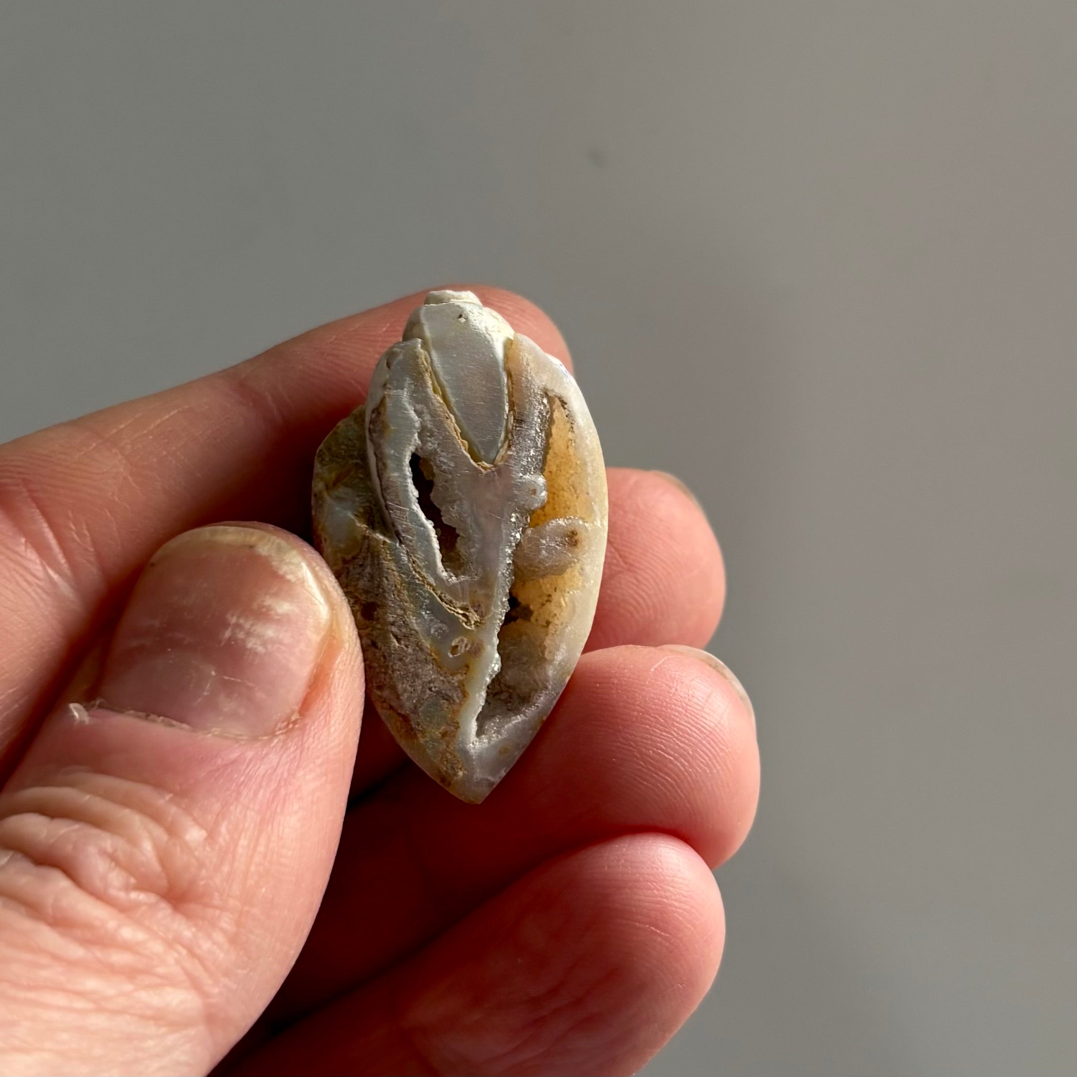 These fascinating fossils are composed of chalcedony Quartz and are often internally encrusted with druzy quartz.