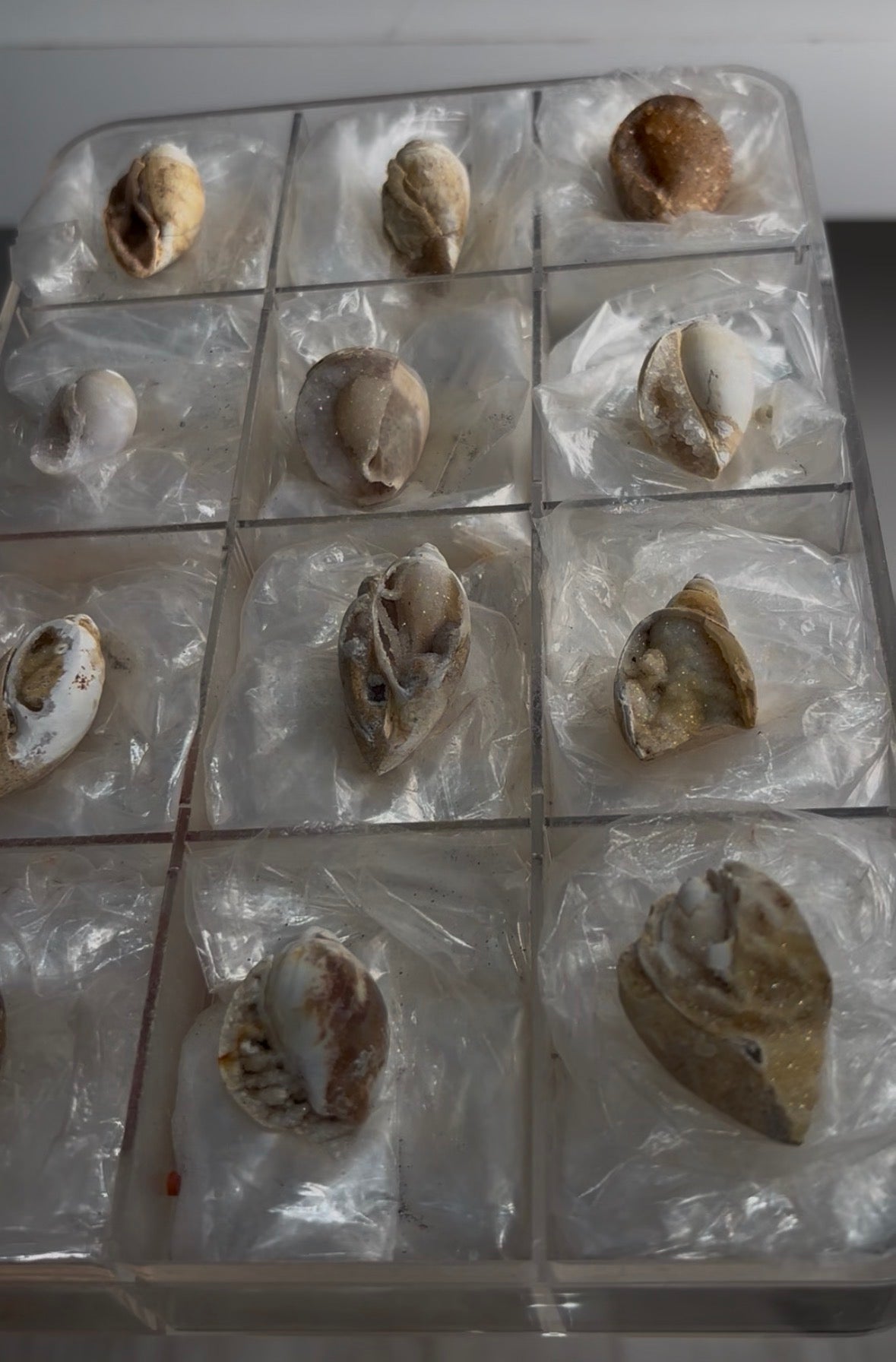 Fossilized Spiralite Quartz Shells  Stunning fossil - mineral specimens ! 12 Piece Lot During the Cretaceous Period, 100-50 million years... Read more