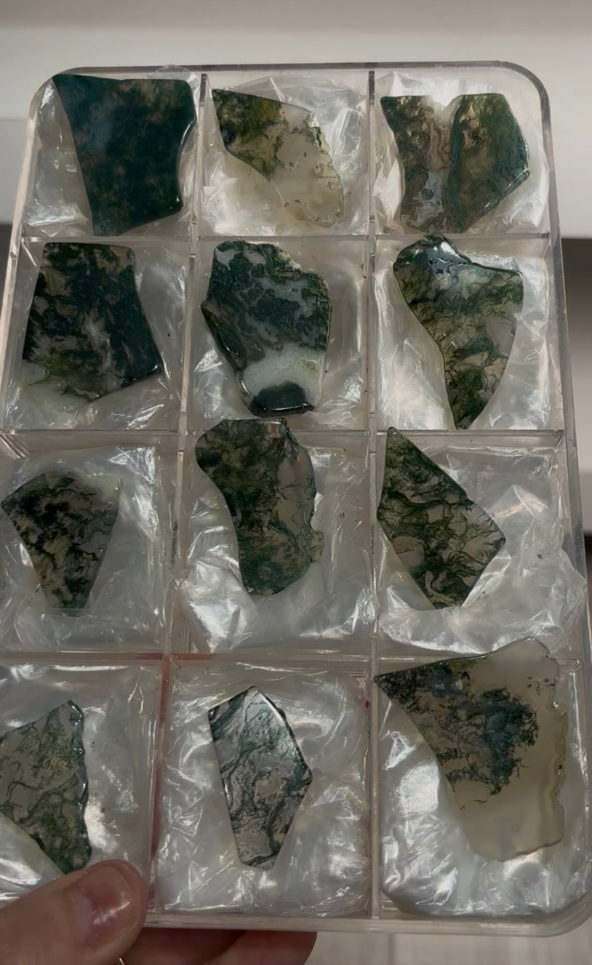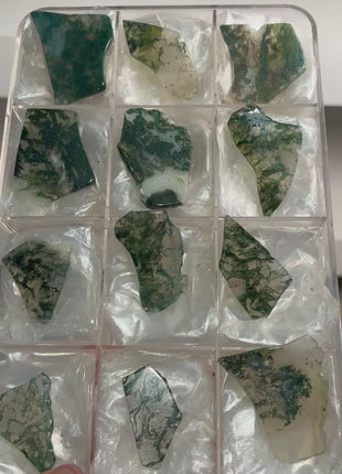 Beautifully Transparent Moss Agate 12 Piece Lot From: India Size range: 41 - 55 mm Total Weight: 102 gr Read more
