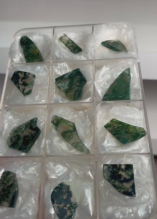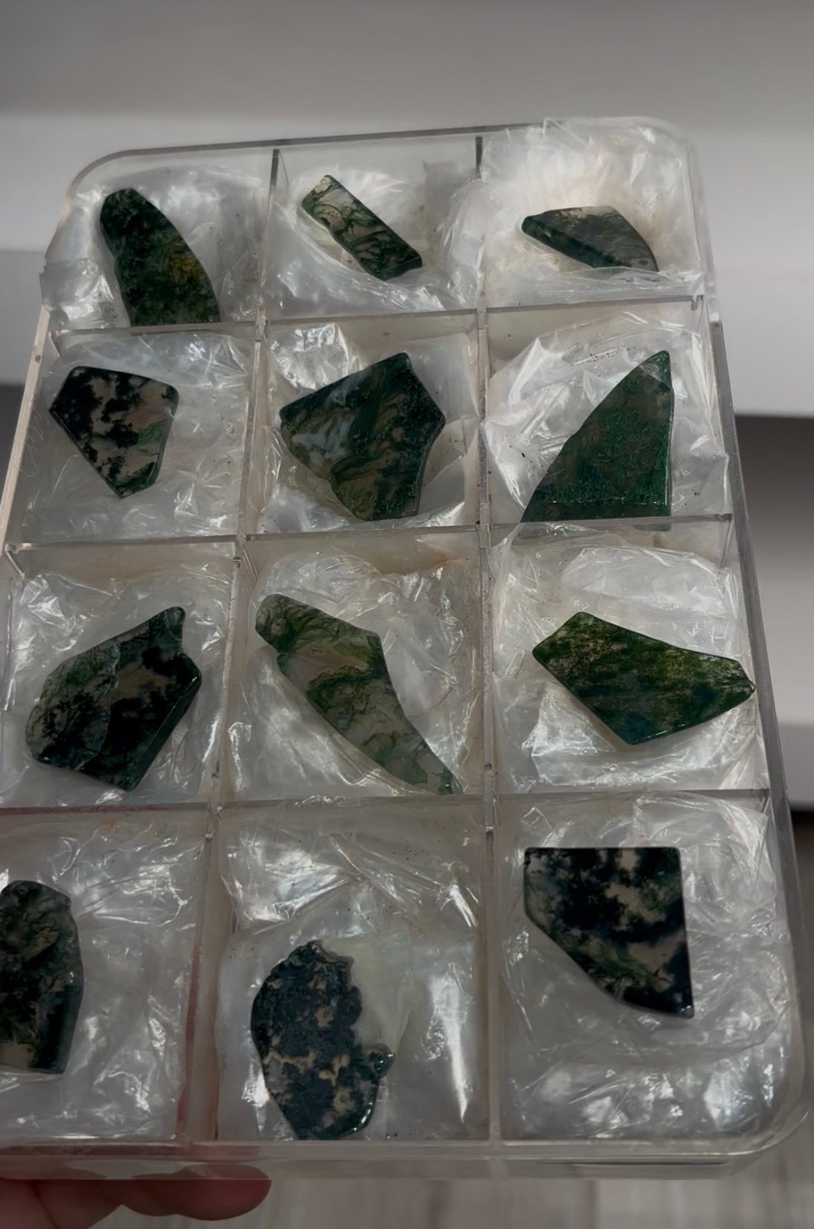 Beautifully Transparent Moss Agate 12 Piece Lot From: India Size range: 32 - 58 mm Total Weight: 70 gr Read more