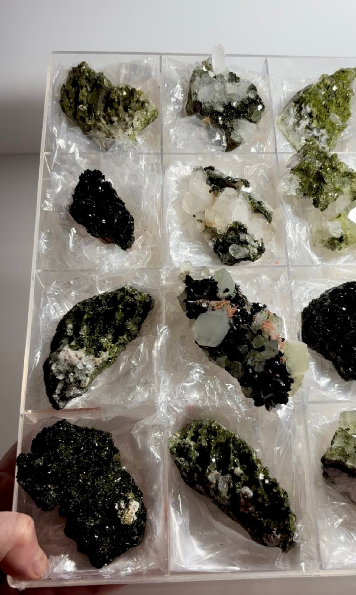 High Grade Forest Green Epidote with Quartz Super sparkly and amazing 12 Piece Lot Size range: 107 - 65 mm Total... Read more