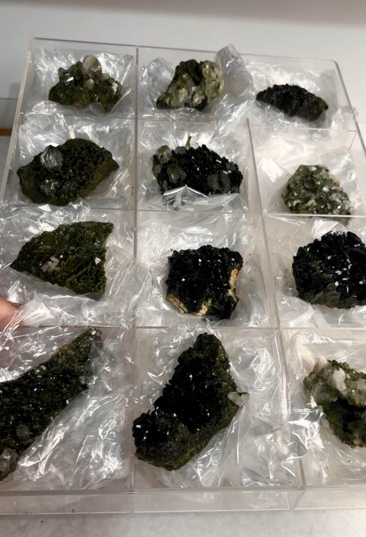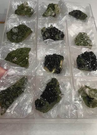 High Grade Forest Green Epidote with Quartz Super sparkly and amazing 12 Piece Lot Size range: 90 - 60 mm... Read more