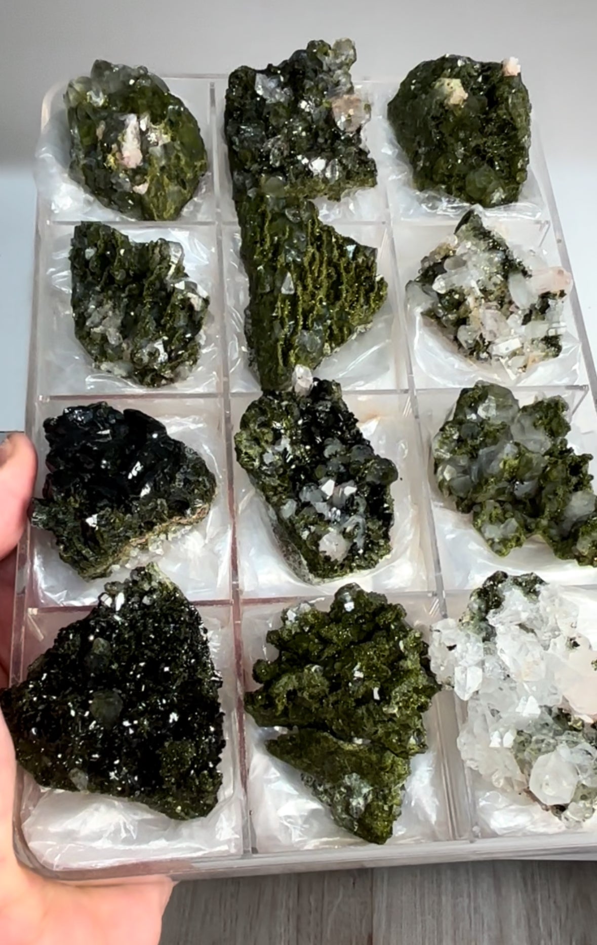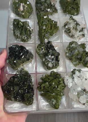 High Grade Forest Green Epidote with Quartz Super sparkly and amazing 12 Piece Lot Size range: 67 - 47 mm... Read more