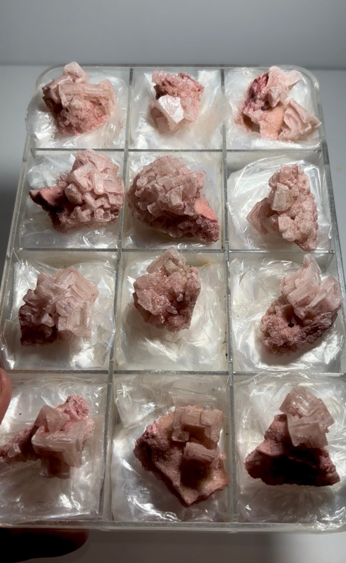 Pink Halite Specimens 12 Piece Lot From: Searles Lake, California Size range: 57 - 38 mm Total Weight: 217 gr Read more