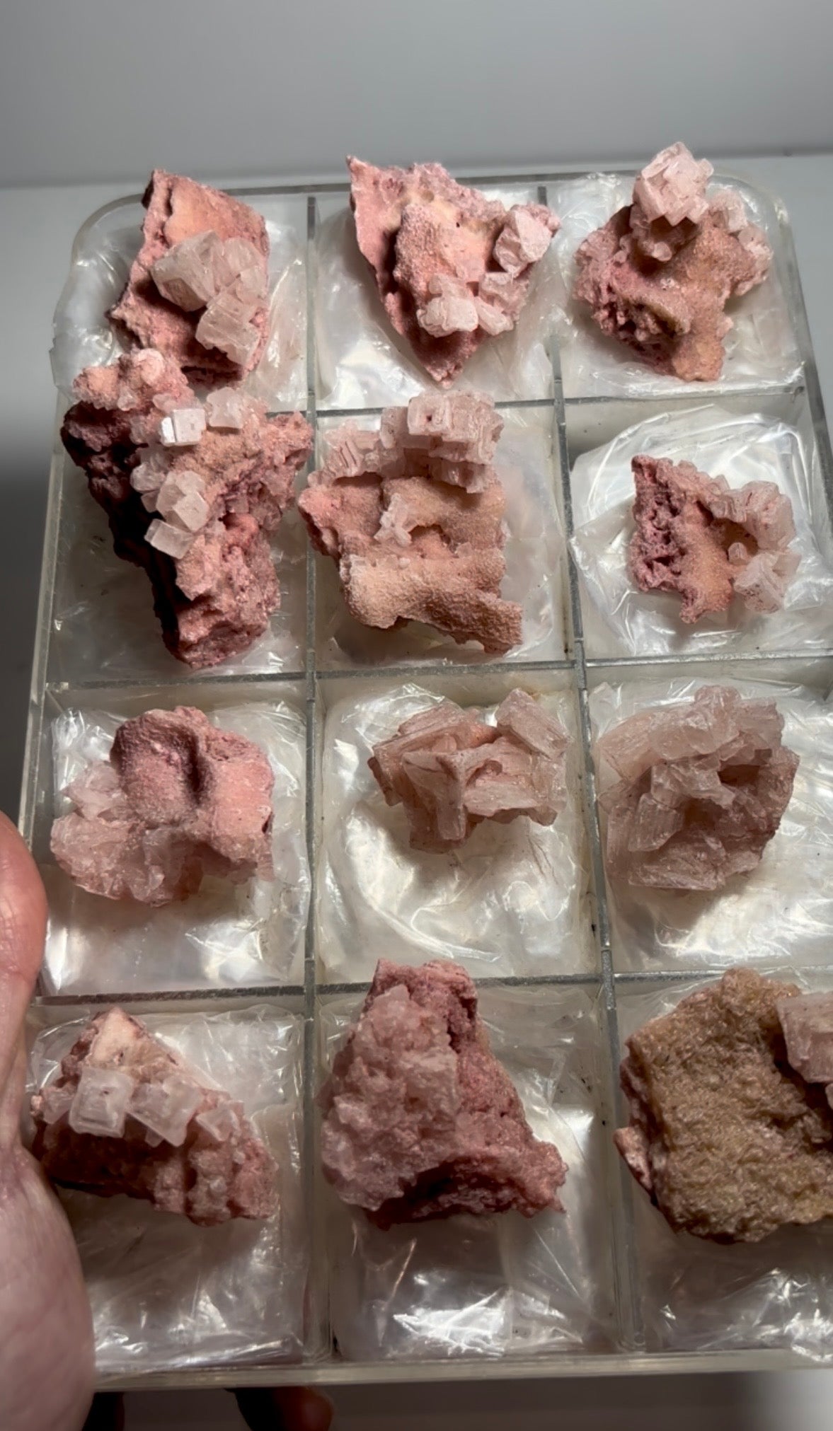 Pink Halite Specimens 12 Piece Lot From: Searles Lake, California Size range: 64 - 32 mm Total Weight: 259 gr Read more
