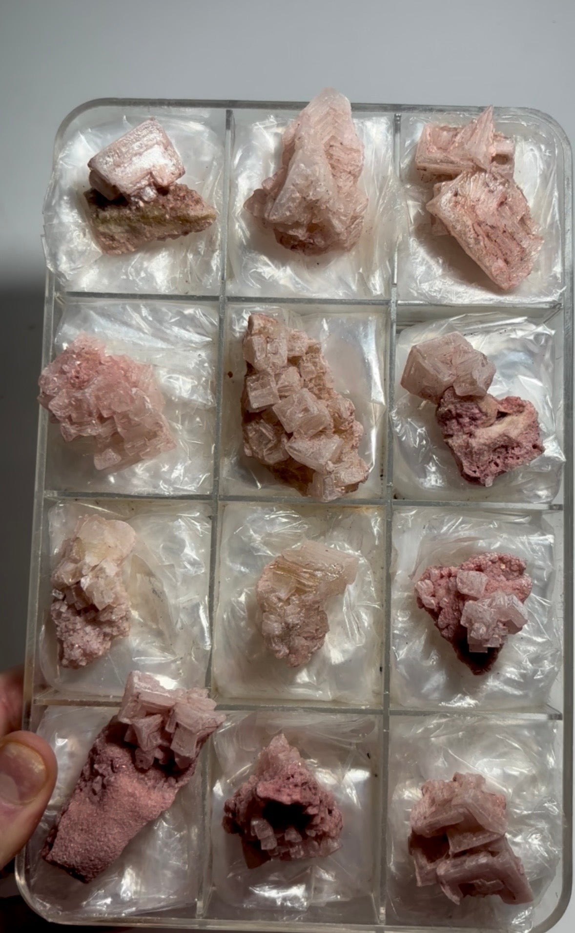 Pink Halite Specimens 12 Piece Lot From: Searles Lake, California Size range: 66 - 37 mm Total Weight: 205 gr Read more