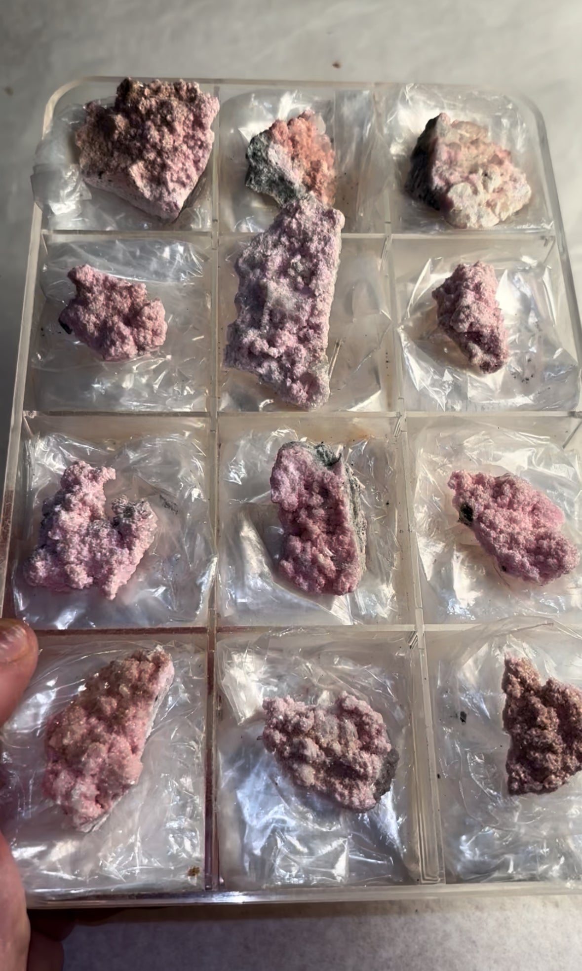 Beautiful Pink Rhodocrosite with Quartz from an uncommon location 12 Piece Lot From:  Davidkovo mine, Rhodope Mountains, Bulgaria Size range:... Read more