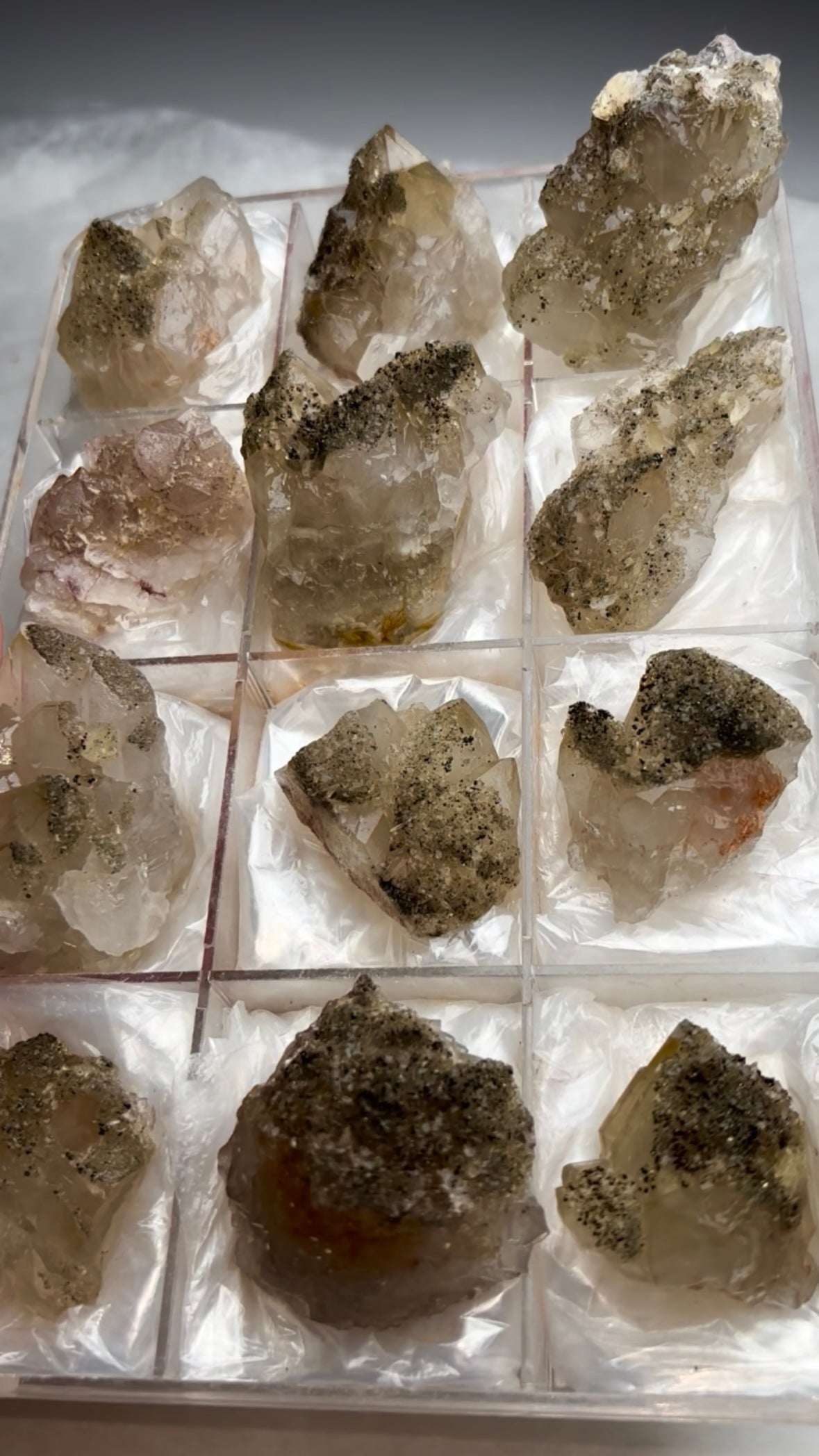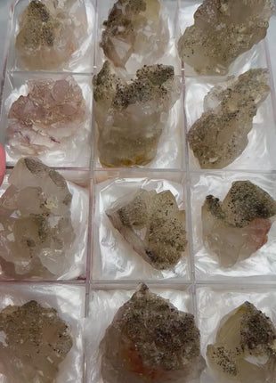 Unusual Quartz with Pyrite 12 Piece Lot From: El Hammam mine, Morocco Size range: 72 - 48 mm Total Weight: 746... Read more