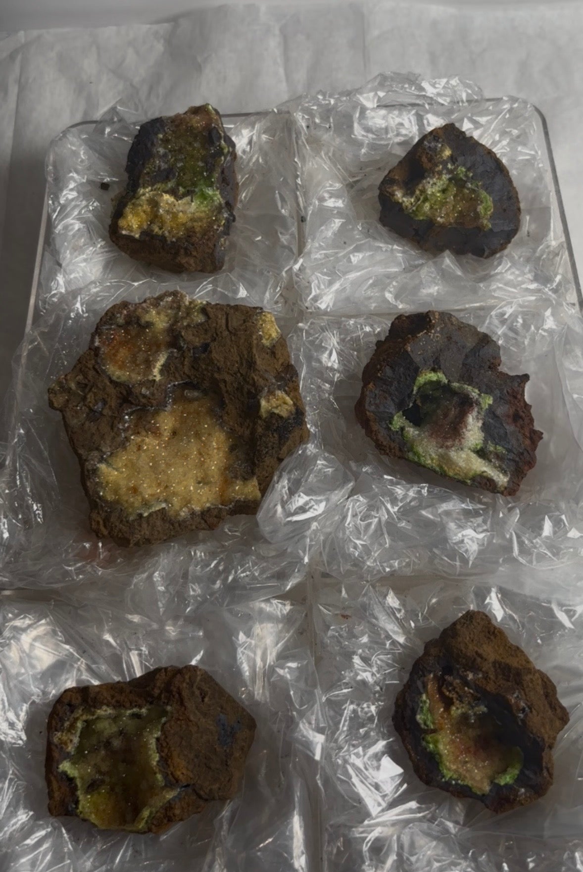6 Pieces ! Druzy Yellow Green Pyromorphite Lot