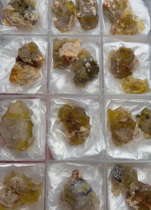 19 Pieces ! Yellow Fluorite with Quartz, Barite lot