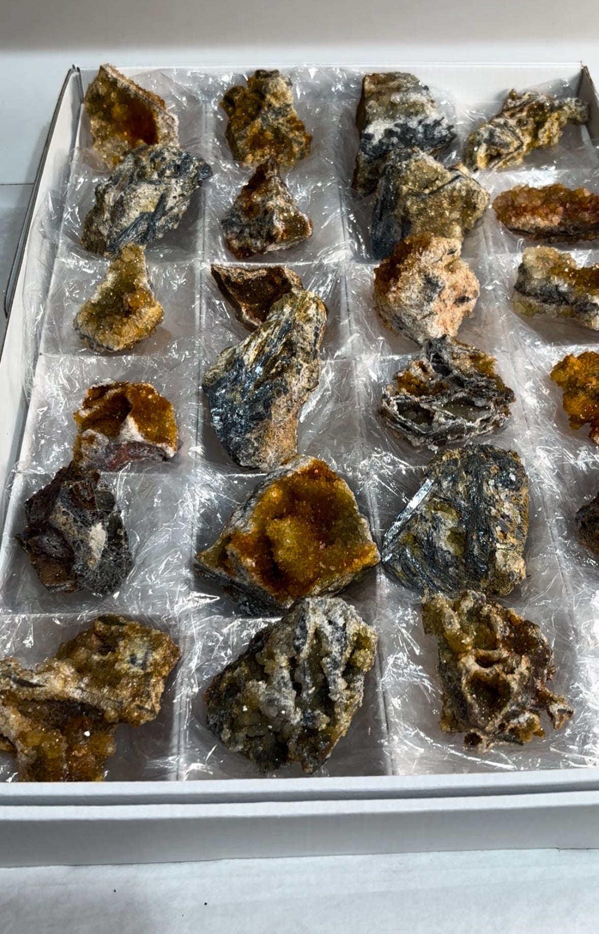 Yellow Citrine with Stibnite Specimens. Extraordinary combination. From a recent discovery. Specimens are a bit rough. 24 Piece Lot Origin: Kutahya,... Read more
