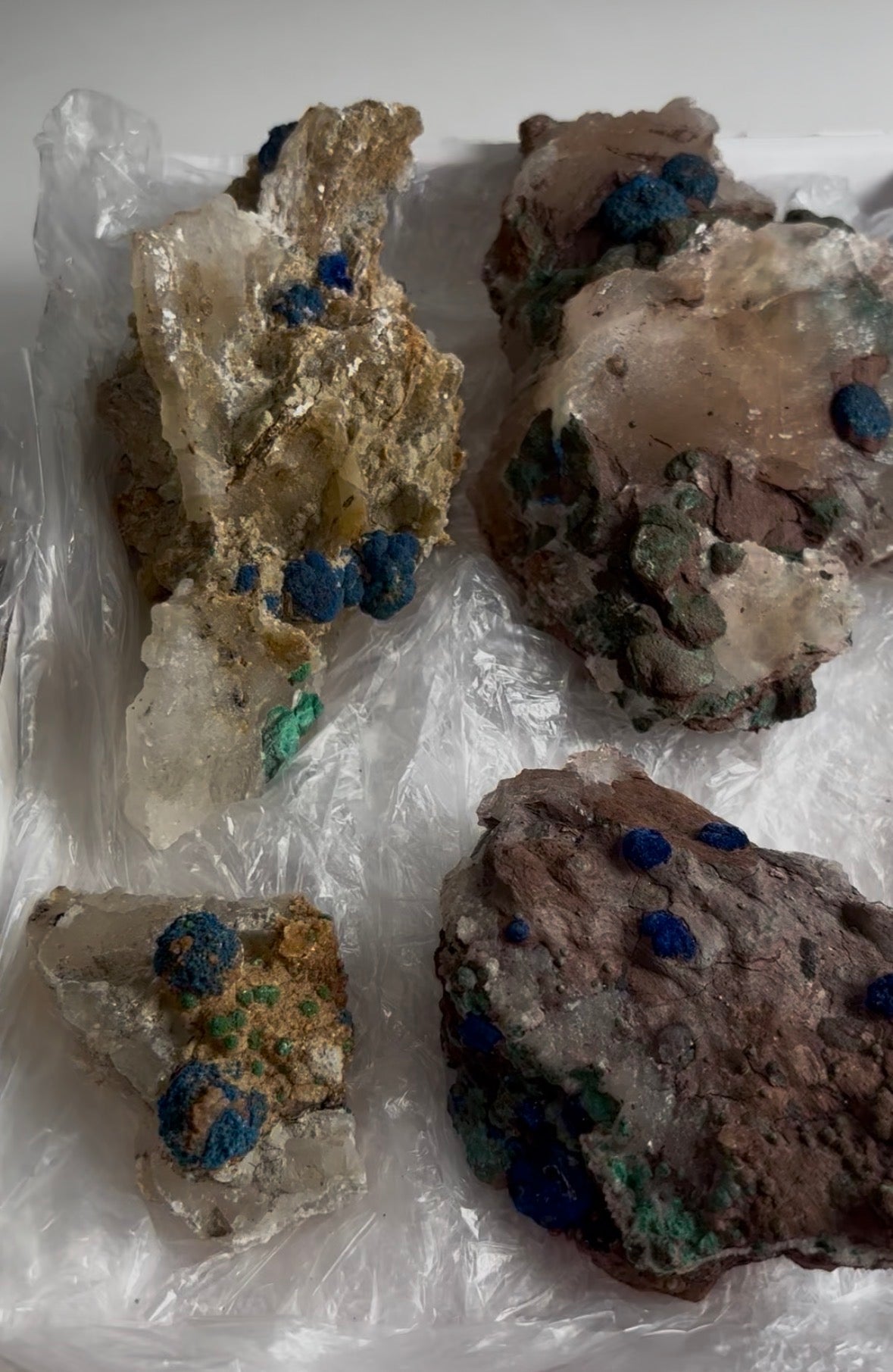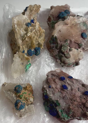 4 Piece Lot ! Rare Blueberry Azurite with Gypsum Specimens