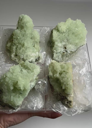 Beautiful Apple Green Prehnite Lot Sparkly Crystals. The prehnite crystals formed in seemingly striated patterns, all bunched up next to each... Read more