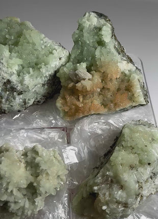 Beautiful Apple Green Prehnite Lot Sparkly Crystals. The prehnite crystals formed in seemingly striated patterns, all bunched up next to each... Read more