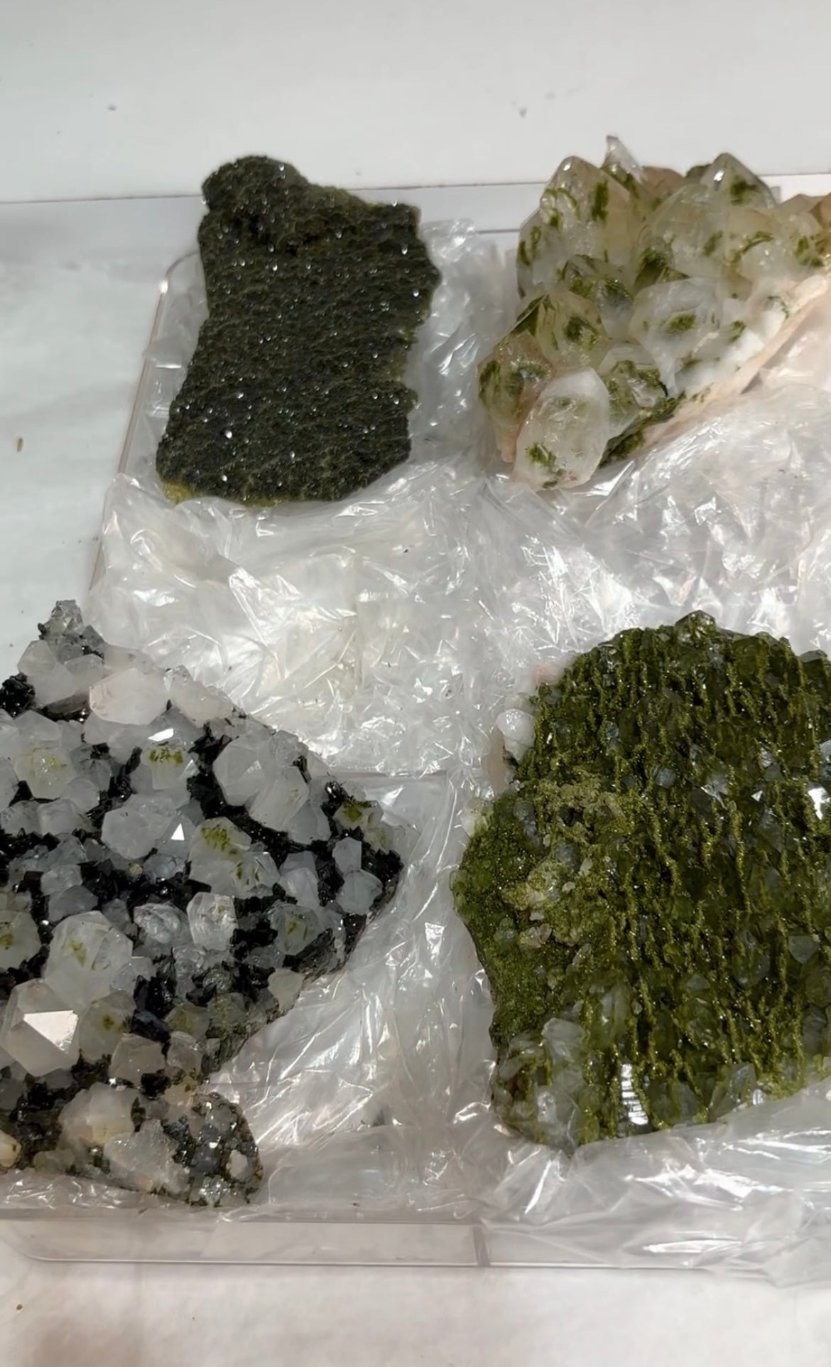 High Grade Forest Green Epidote with Quartz Super sparkly and amazing 4 Piece Lot Size range: 154 - 122 mm... Read more