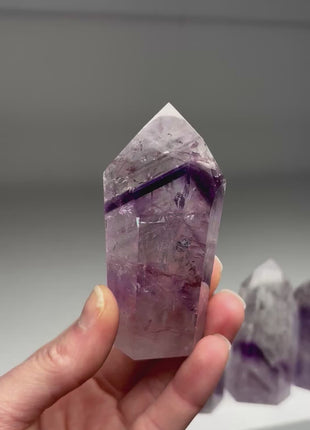 Beautiful Phantom Amethyst Towers Self-standing From: Minas De Gerais, Brazil 4 Piece Lot Size range: 81 - 85 mm Total... Read more