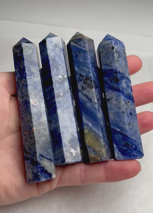 Blue Sodalite Towers Self-standing From: Brazil 4 Piece Lot Size range: 105 - 94 mm Total Weight: 279 gr Read more