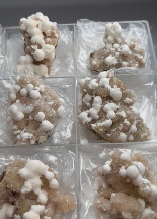 Okenite with Stilbite New find ! Origin: Nashik, Maharashtra, India 6 Pieces Size Range: 98 - 80 mm Total Weight:... Read more