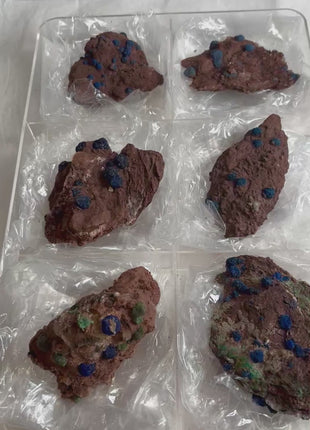 6 Piece Lot ! Rare Blueberry Azurite with Gypsum Specimens