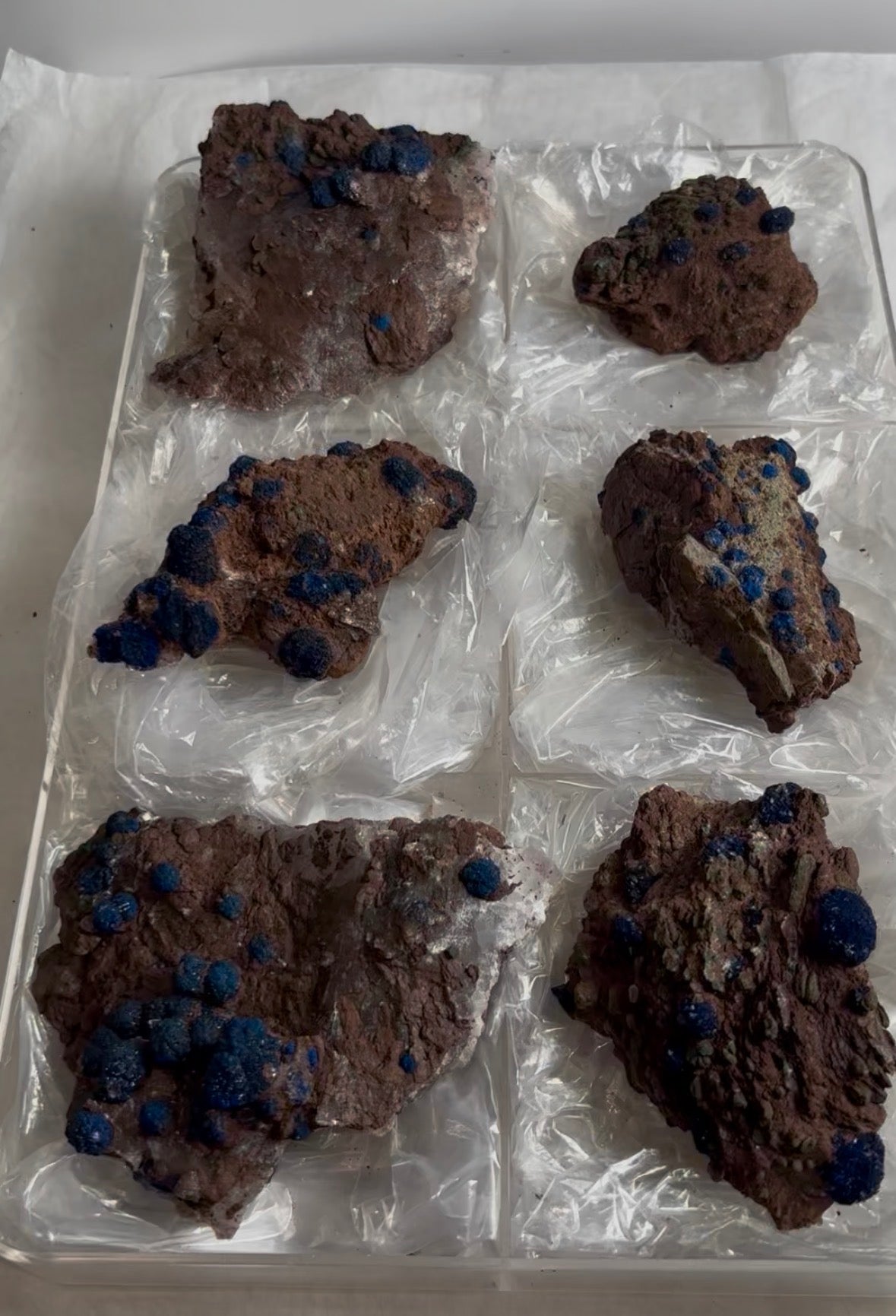6 Piece Lot ! Rare Blueberry Azurite with Gypsum Specimens