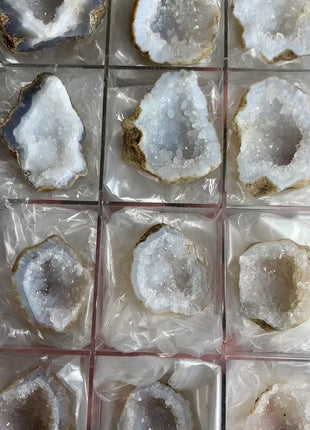 6 Pieces ! Blue Chalcedony and Quartz Geode Lot - Both Halves