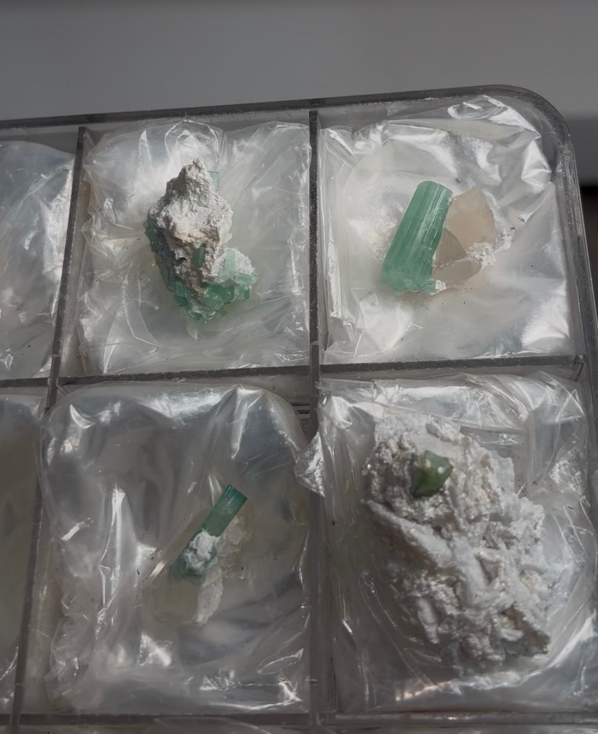 Blue Green Tourmaline Specimens 6 Piece Lot From: Afghanistan Size range: 24 - 45 mm Total Weight: 76 gr Read more