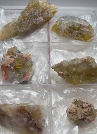 Yellow Blue Fluorite with Quartz lot 6 Piece Lot From: Tizi-n-Tichka, Ouarzazate Province, Morocco Size range: 122 - 44 mm Total... Read more