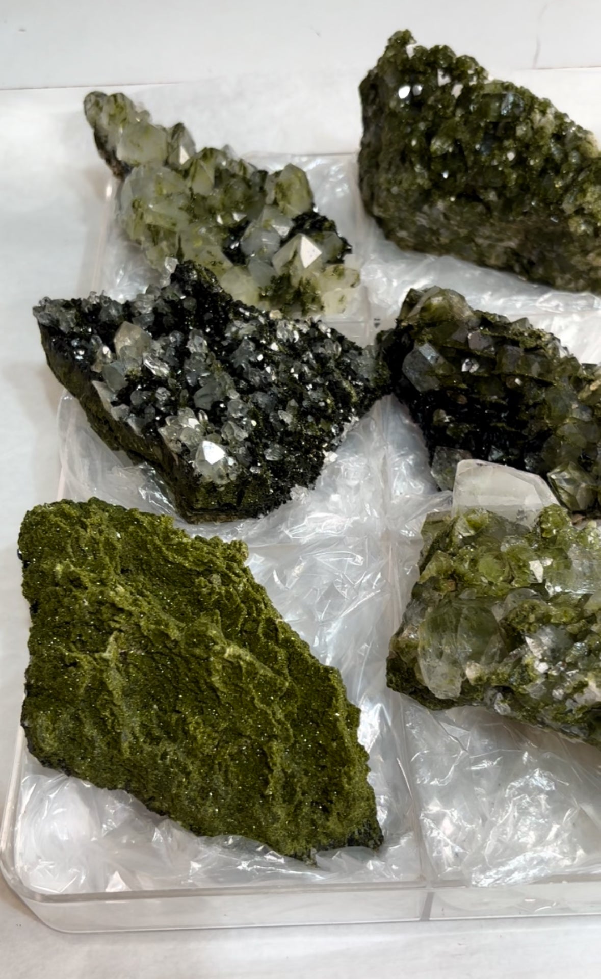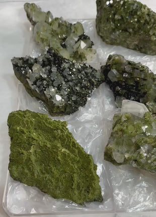 High Grade Forest Green Epidote with Quartz Super sparkly and amazing 6 Piece Lot Size range: 145 - 122 mm... Read more