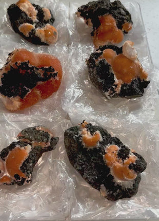 Bright Orange Thomsonite with Mesolite Specimens 6 Piece Lot From: Deshgaon, Madhya Pradesh, India Size range: 98 - 80 mm Total... Read more