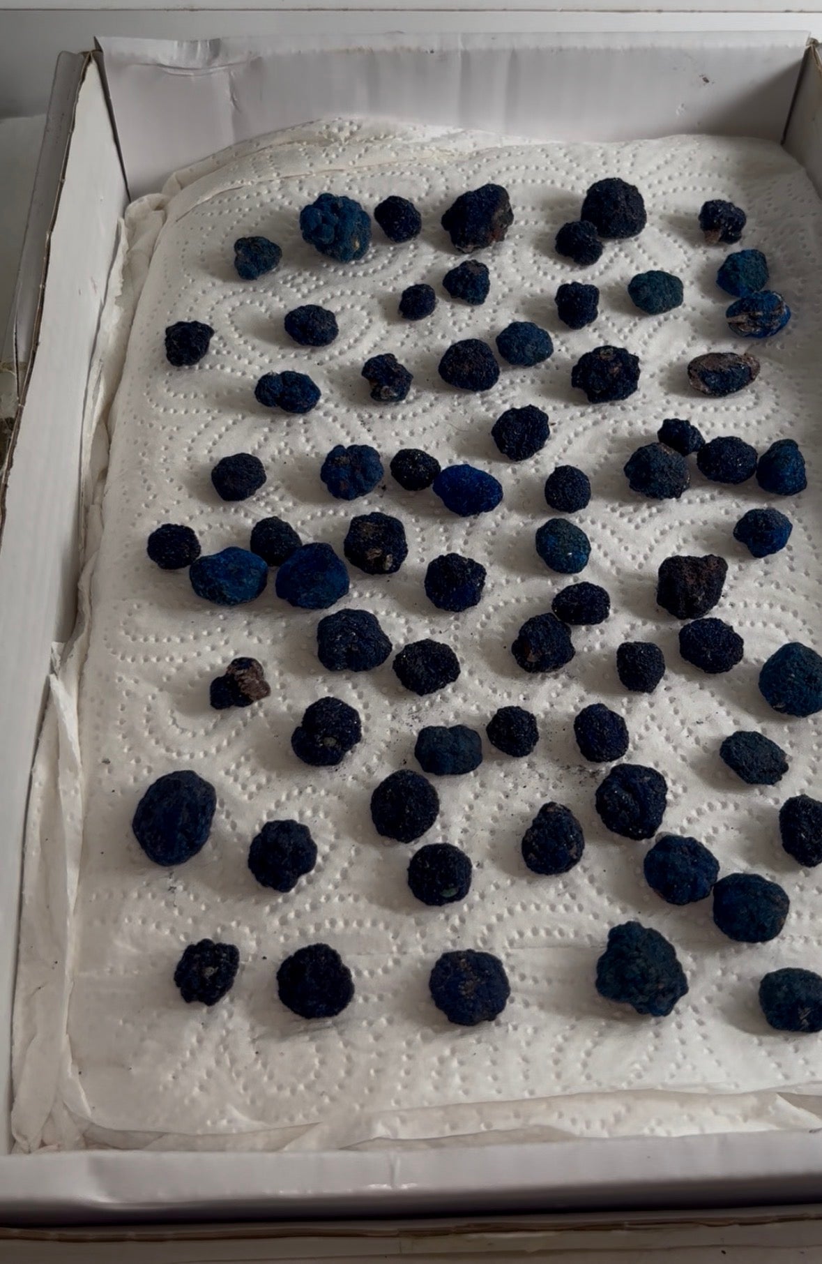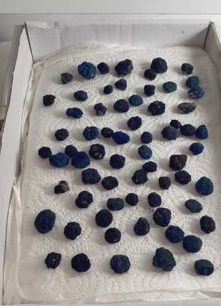 Blueberry Azurite Crystals. Crystals are formed like blueberries 65+ Piece Lot From: Aouli, Zeida-Aouli-Mibladen belt, Midelt Province, Morocco Size range: 23... Read more