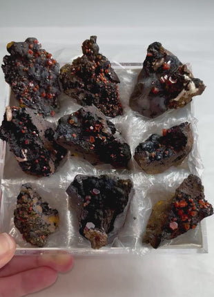 9 Piece Lot ! Black Goethite with Red Vanadinite