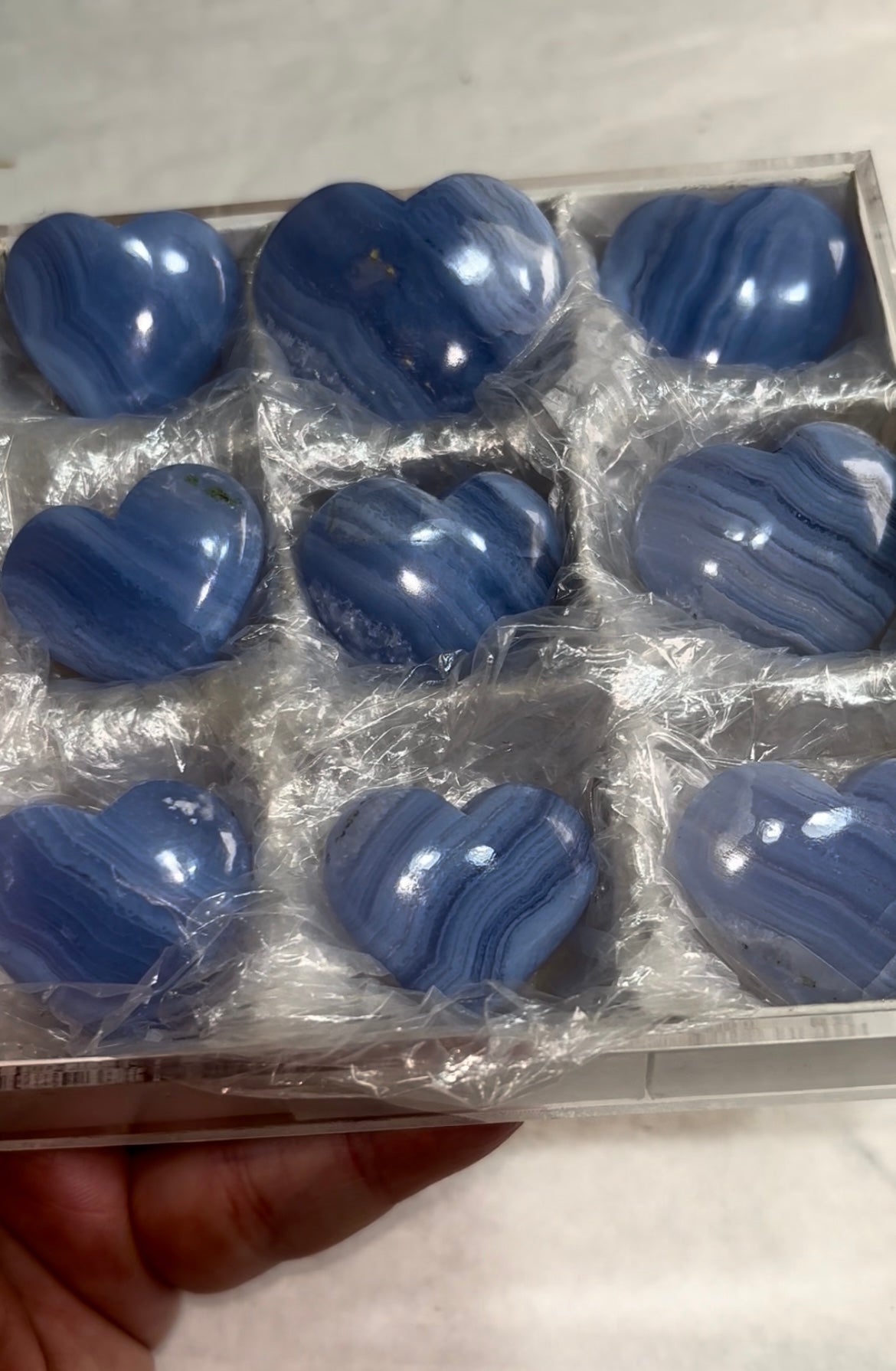 Blue Lace Agate Lingham 9 piece lot Origin : Size range: 44 - 32 mm Total Weight : 191 gr... Read more
