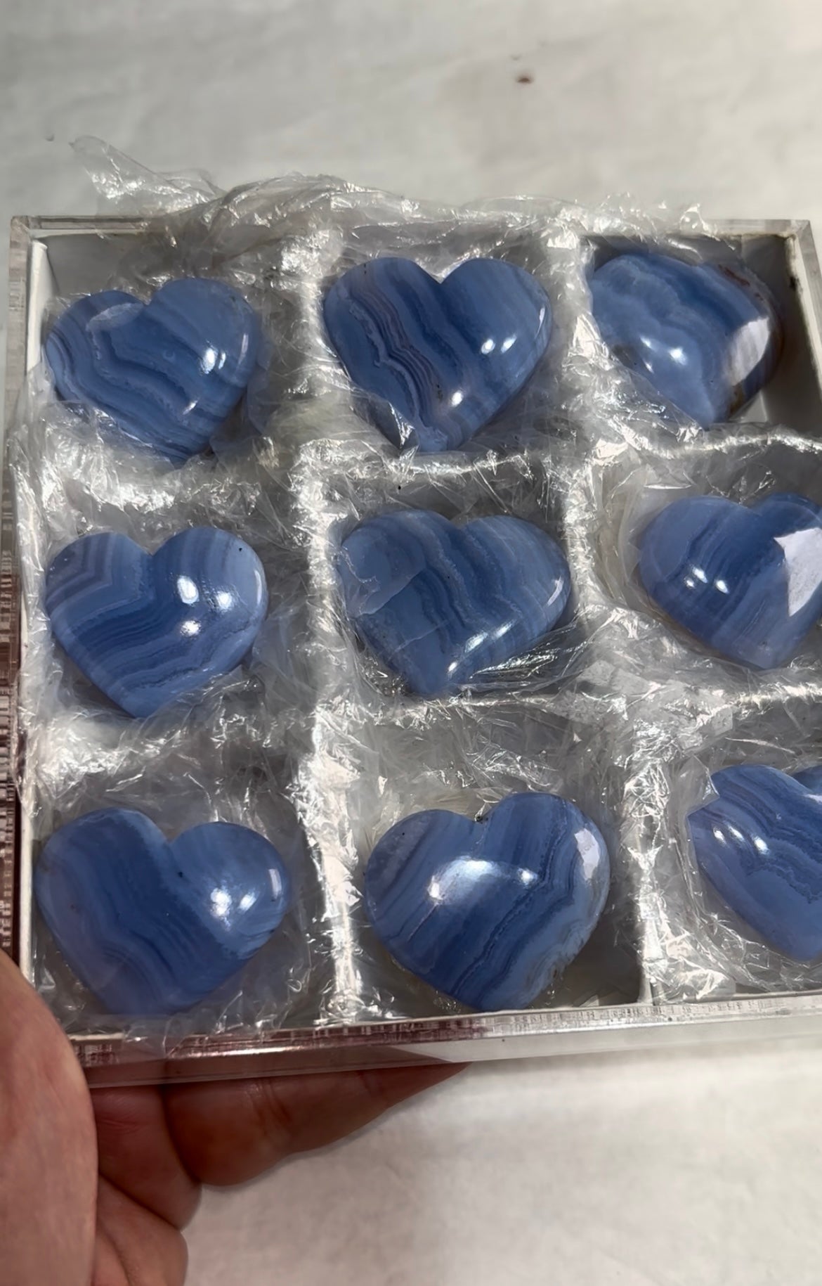 High Grade Blue Lace Agate 9 piece lot Origin : Namibia Size range: 36 - 29 mm Total Weight : 155... Read more