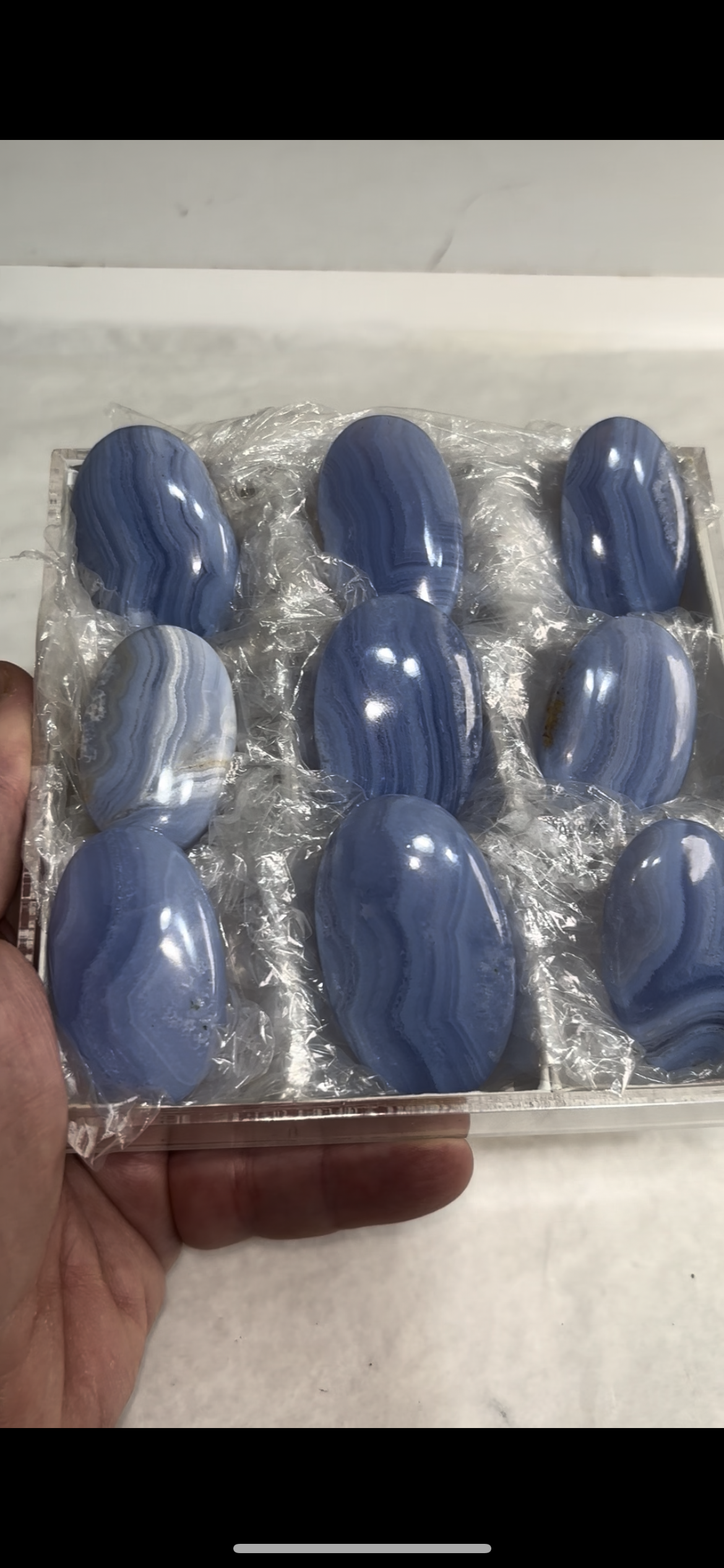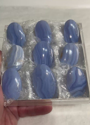 High Grade Blue Lace Agate 9 piece lot Origin : Namibia Size range: 52 - 45 mm Total Weight : 228... Read more