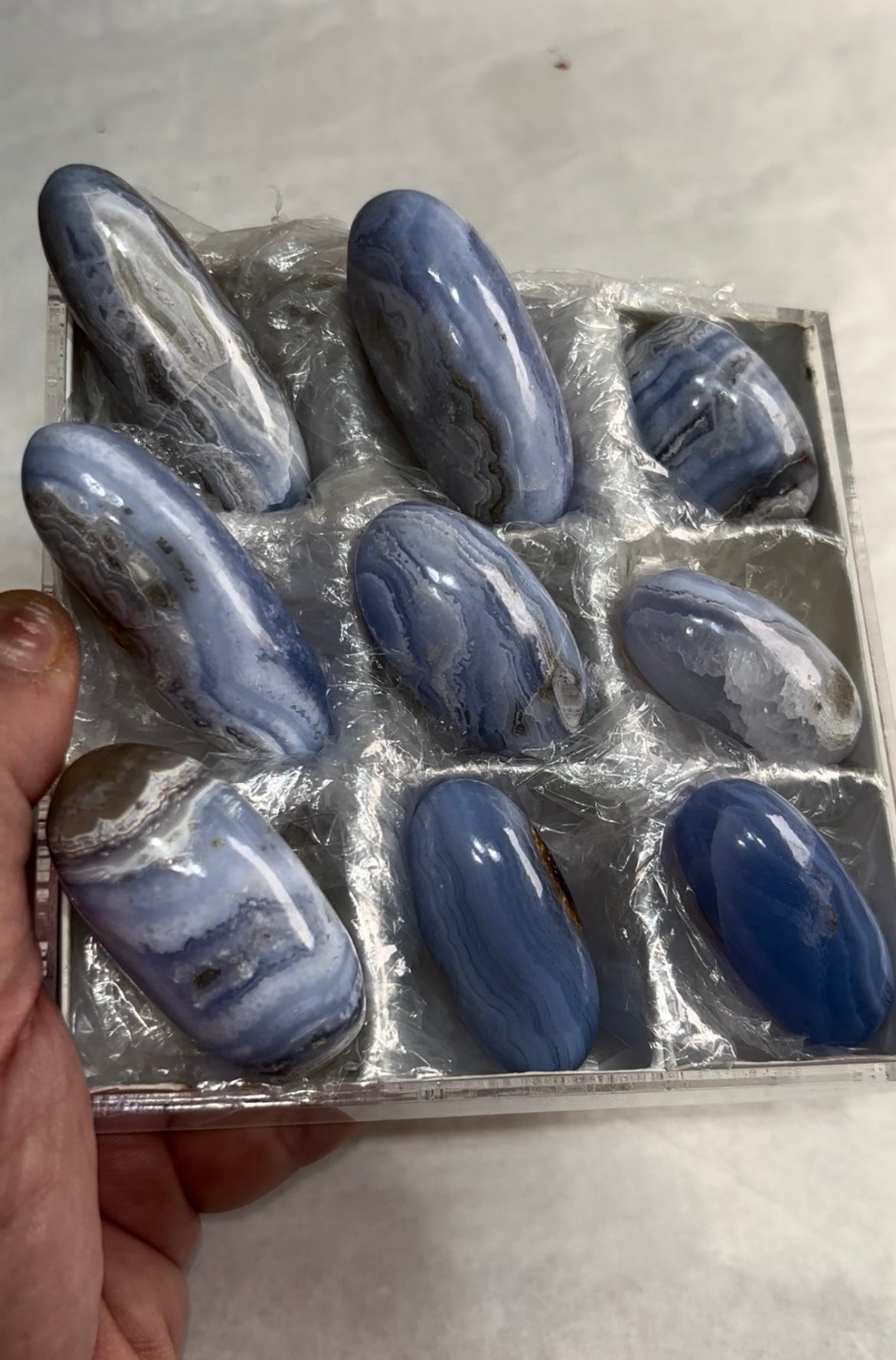 High Grade Blue Lace Agate 9 piece lot Origin : Namibia Size range: 61 - 42 mm Total Weight : 336... Read more