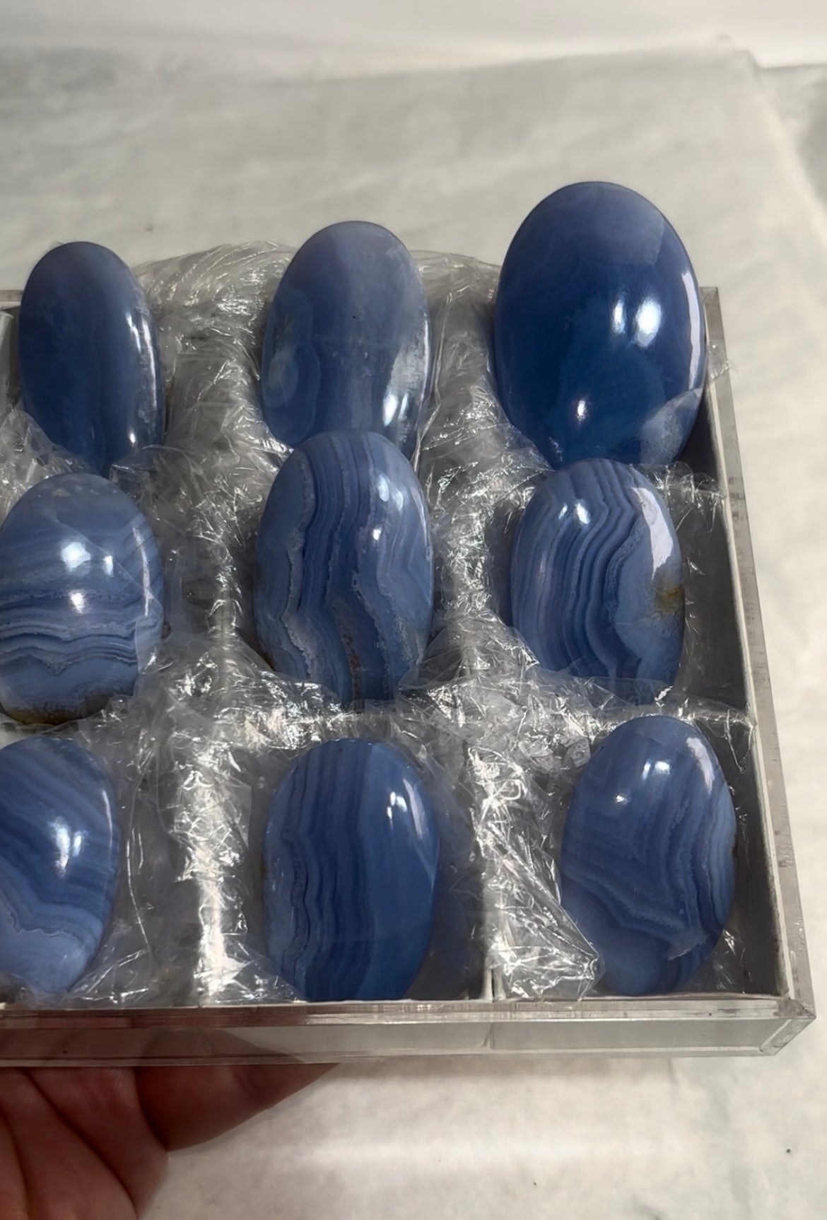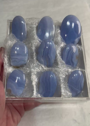High Grade Blue Lace Agate 9 piece lot Origin : Namibia Size range: 54 - 41 mm Total Weight : 226... Read more