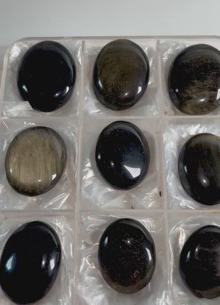 Very High Grade Golden Sheen Obsidian All pieces with great golden sheen The alluring golden sheen of this black obsidian arises from... Read more