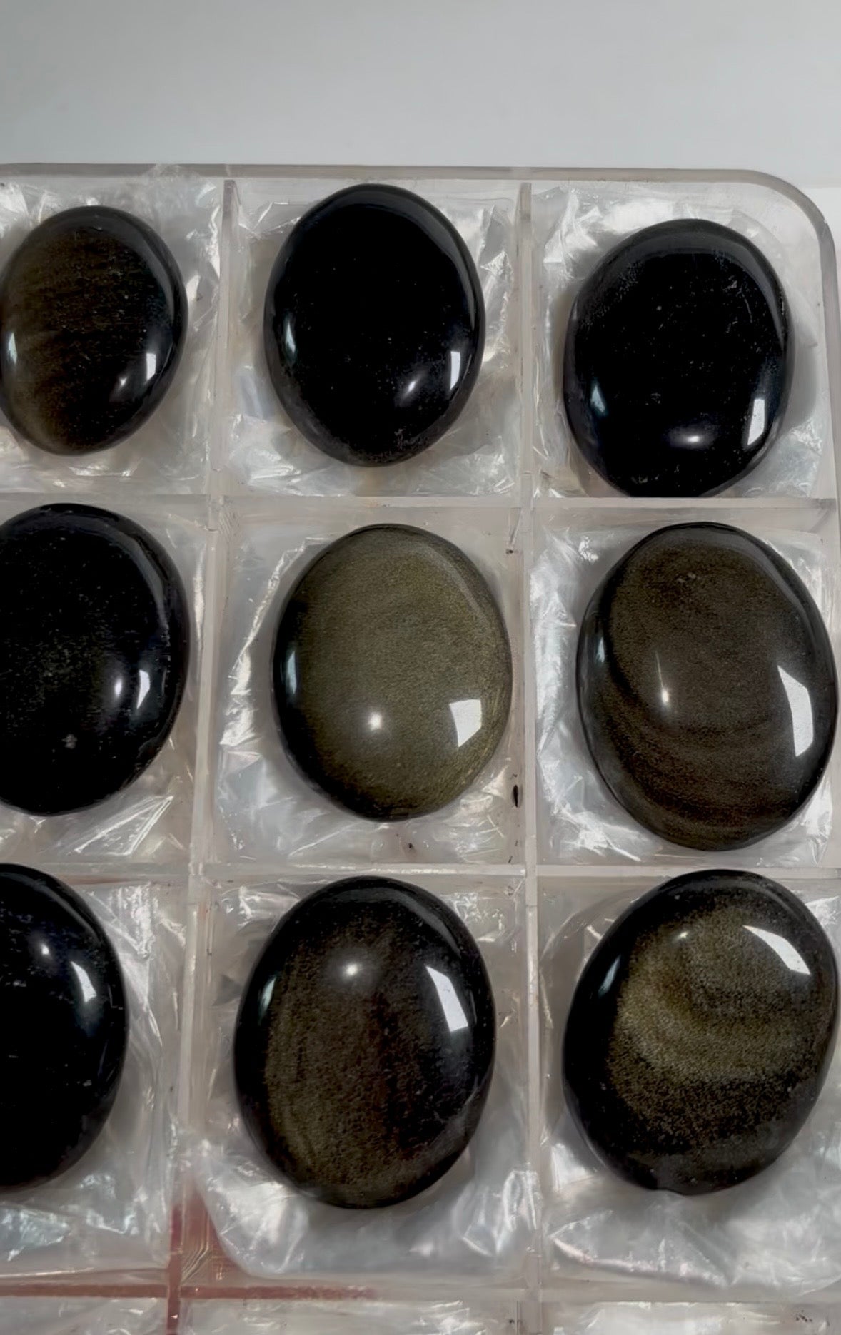 Very High Grade Golden Sheen Obsidian  All pieces with great golden sheen The alluring golden sheen of this black obsidian arises from... Read more