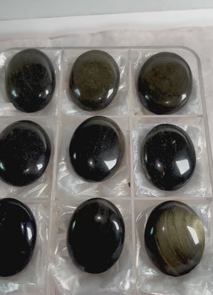 Very High Grade Golden Sheen Obsidian  All pieces with great golden sheen The alluring golden sheen of this black obsidian arises from... Read more