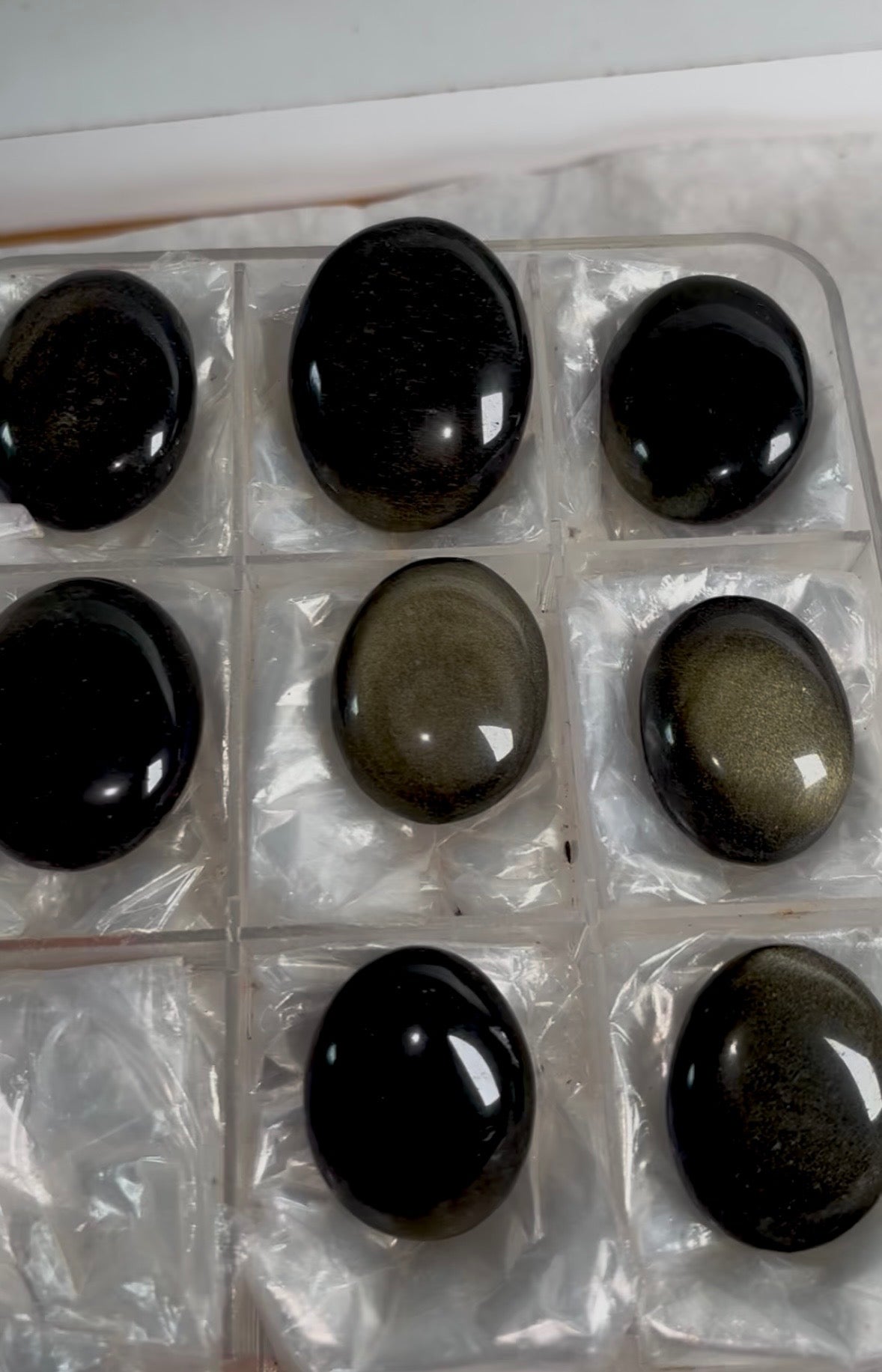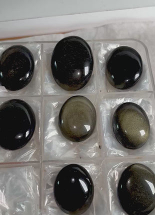 Very High Grade Golden Sheen Obsidian All pieces with great golden sheen The alluring golden sheen of this black obsidian arises from... Read more