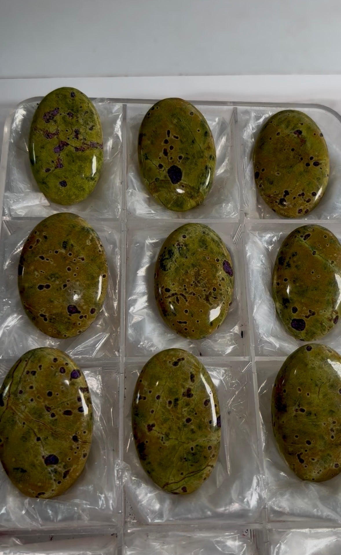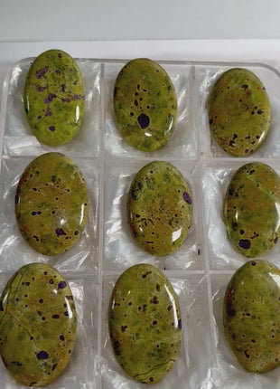 Atlantisite the trade name for a stone composed of Serpentine and Stichtite. Serpentine, the dominant mineral in atlantisite, is bright green and gives the stone its unique base color. Embedded within this green serpentine are patches or veins of Stichtite, which adds vibrant purple hues to the stone. The result is a mesmerizing contrast between green and purple that makes atlantisite instantly recognizable and highly sought after.