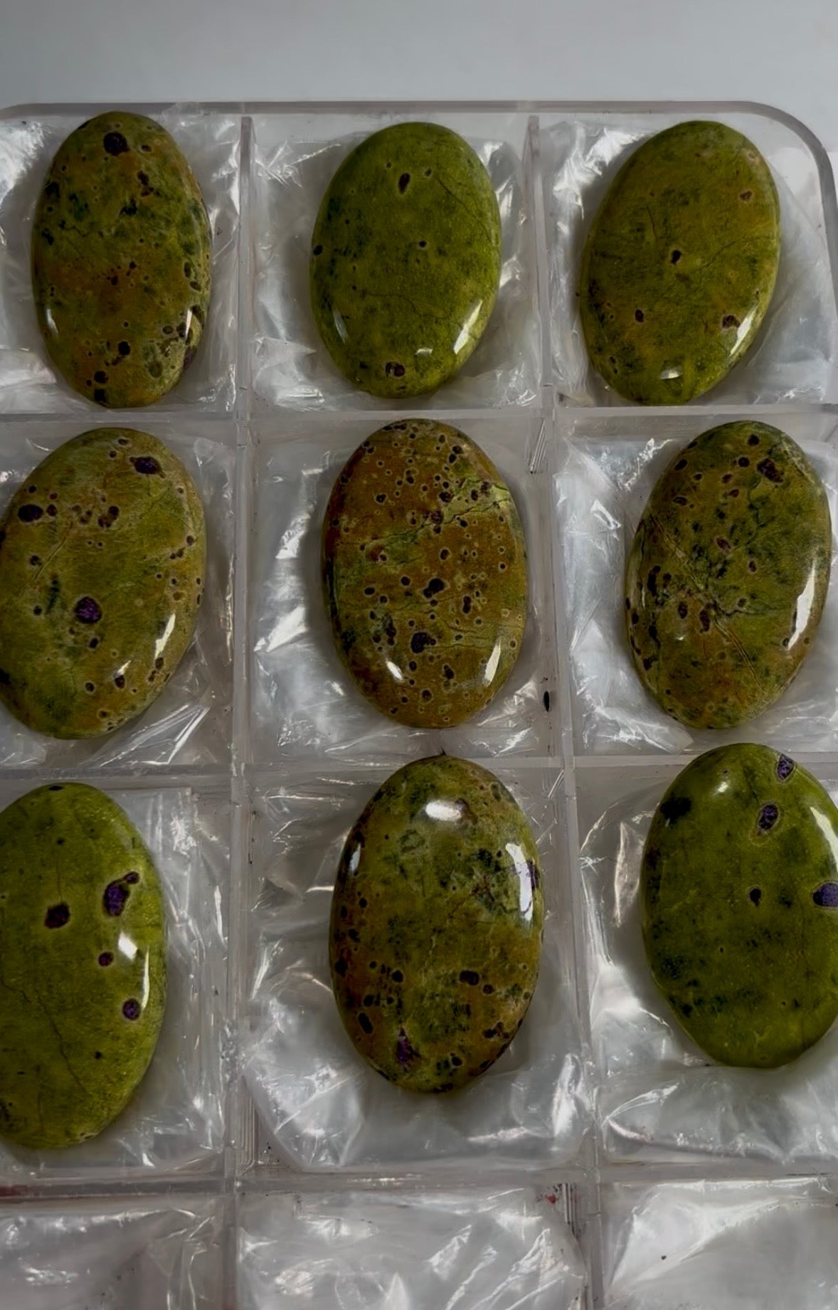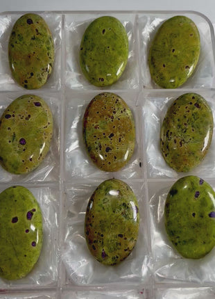 Atlantisite the trade name for a stone composed of Serpentine and Stichtite. Serpentine, the dominant mineral in atlantisite, is bright green and gives the stone its unique base color. Embedded within this green serpentine are patches or veins of Stichtite, which adds vibrant purple hues to the stone. The result is a mesmerizing contrast between green and purple that makes atlantisite instantly recognizable and highly sought after.