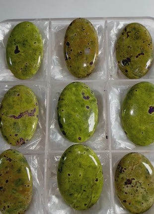 Atlantisite the trade name for a stone composed of Serpentine and Stichtite. Serpentine, the dominant mineral in atlantisite, is bright green and gives the stone its unique base color. Embedded within this green serpentine are patches or veins of Stichtite, which adds vibrant purple hues to the stone. The result is a mesmerizing contrast between green and purple that makes atlantisite instantly recognizable and highly sought after.