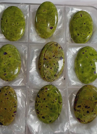 Atlantisite the trade name for a stone composed of Serpentine and Stichtite. Serpentine, the dominant mineral in atlantisite, is bright green and gives the stone its unique base color. Embedded within this green serpentine are patches or veins of Stichtite, which adds vibrant purple hues to the stone. The result is a mesmerizing contrast between green and purple that makes atlantisite instantly recognizable and highly sought after.