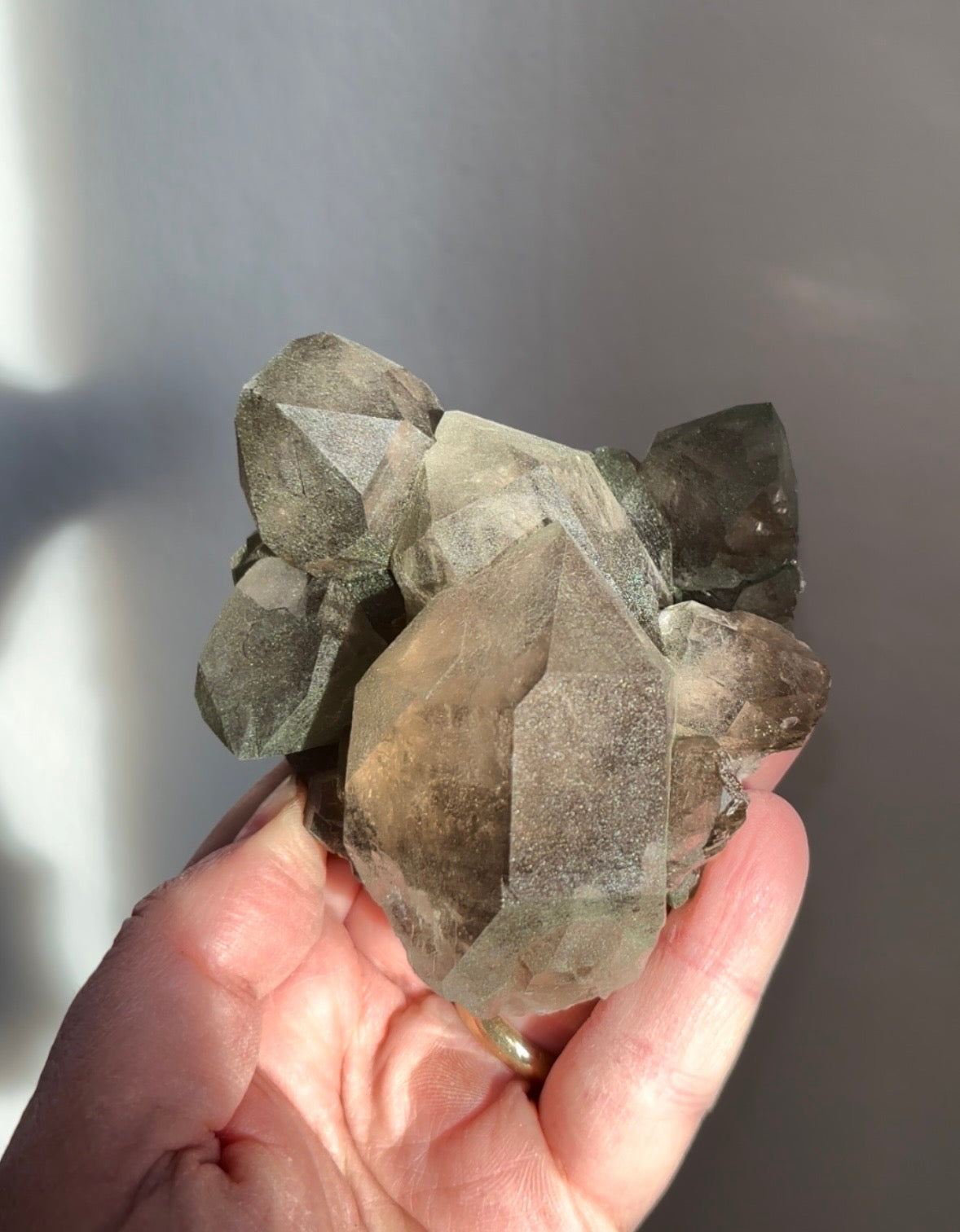 Alpine Smoky Quartz with Green Chlorite ! Wow