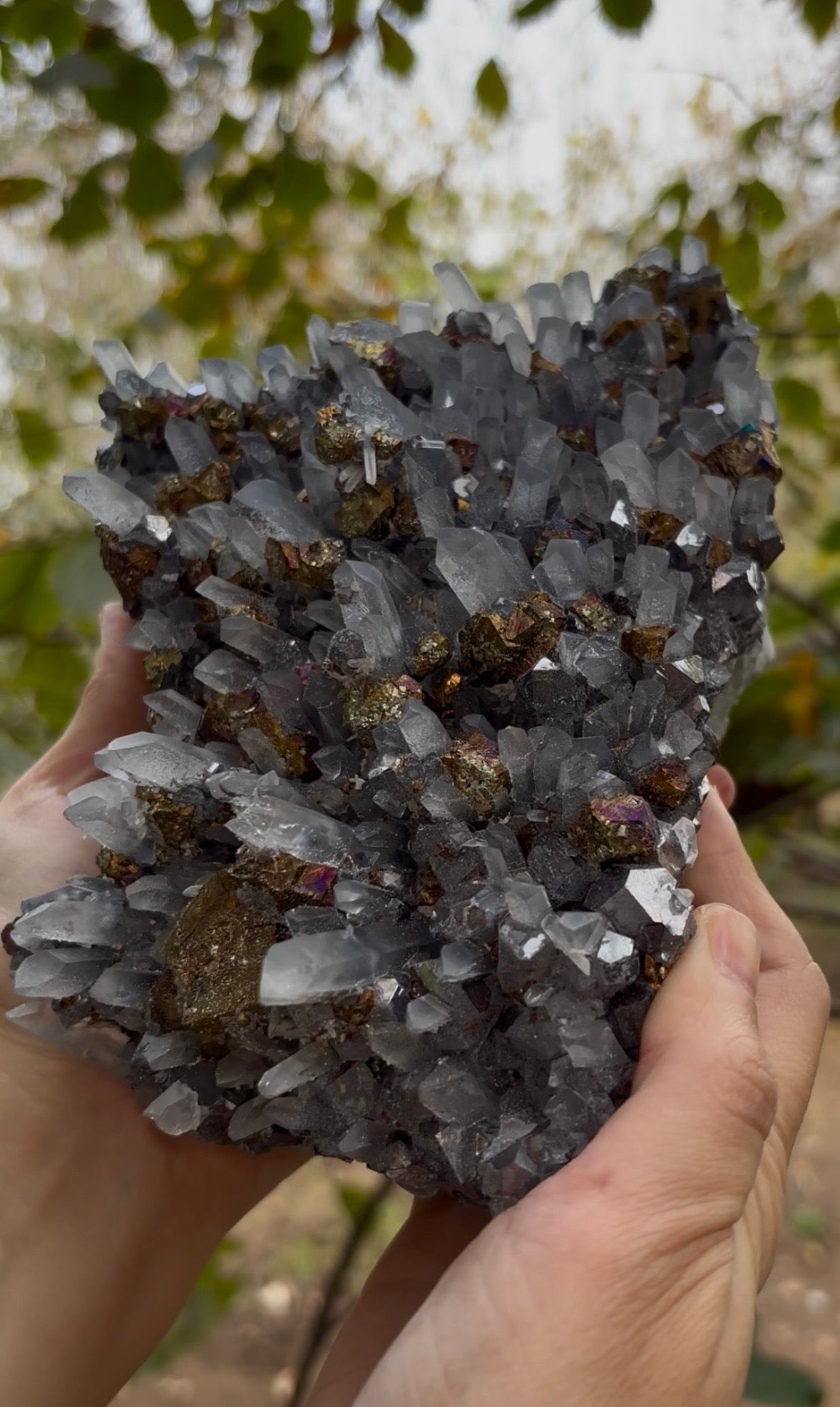 Absolutely Beautiful Quartz with Colorful Chalcopyrite and Metallic Galena Origin: Borieva mine, Rhodope Mountains, Bulgaria Size: 210 x 150 x 70... Read more