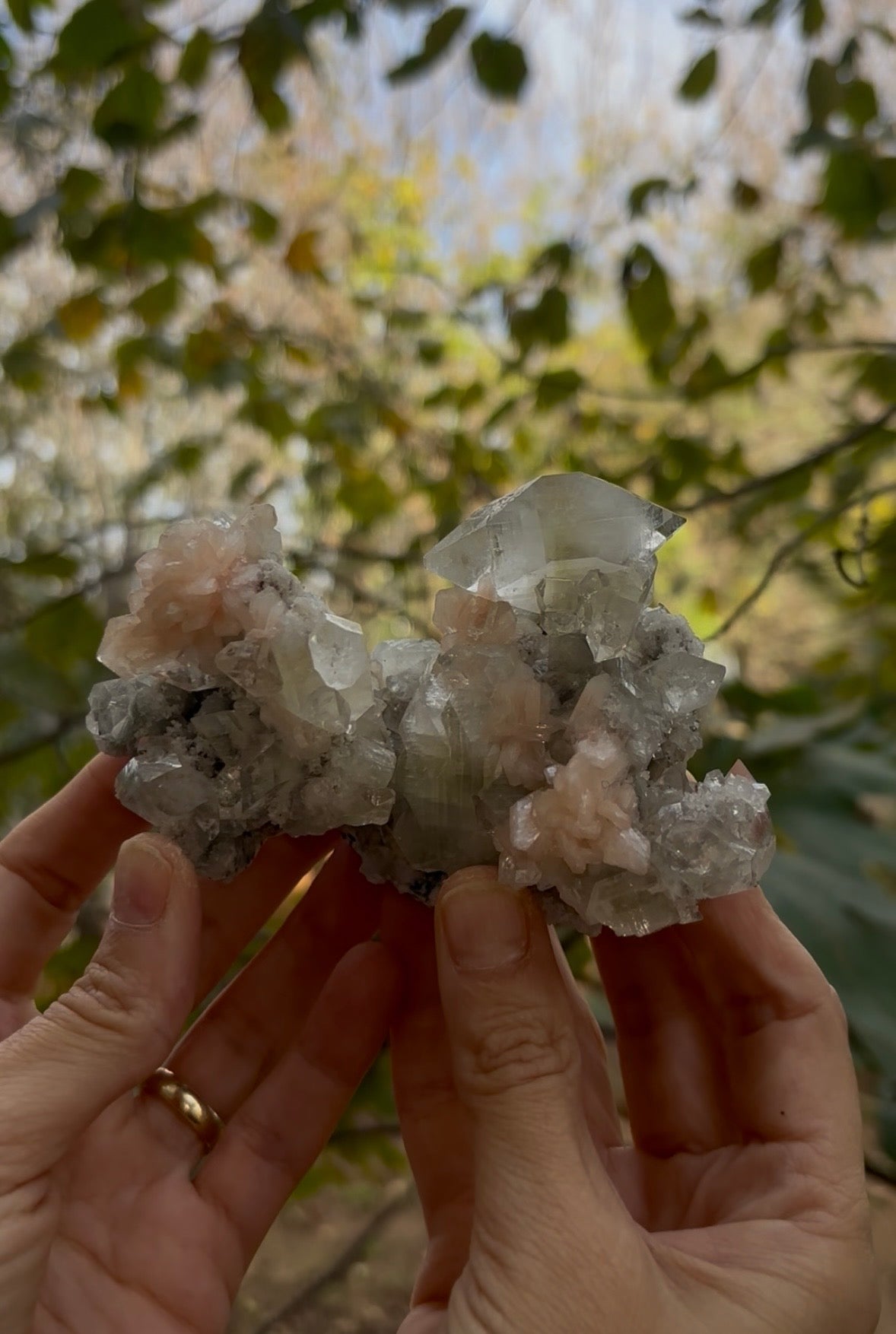 Lustrous DT Green Apophyllite with Pink Stilbite Origin: Nashik, Maharashtra, India Size: 127 x 75 x 78 mm Weight:... Read more