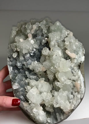 Very High Grade Apophyllite, Pink Stilbite with Blue Chalcedony Stalactites From: Nashik, India Size: 215 mm x 163 mm x... Read more